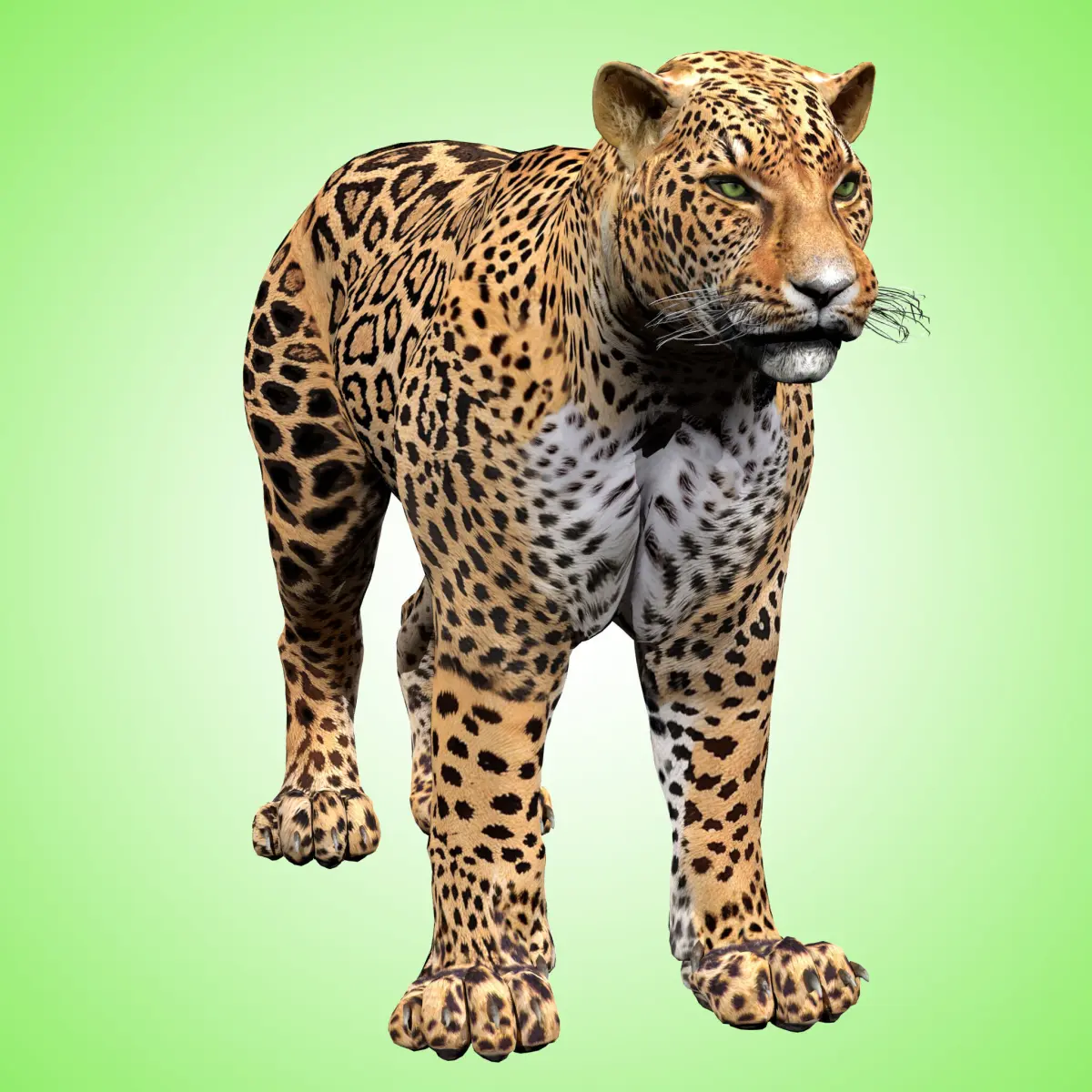 This is a highly detailed 3D model of a Leopard, one of the iconic big cat species found across parts of the Americas. The model features high-resolution texturing and a fully rigged structure for seamless integration into animations and environments.