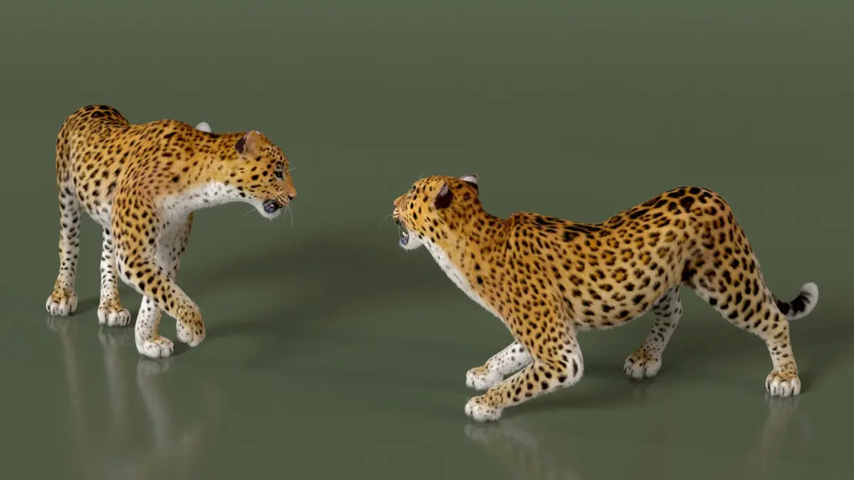 This detailed model captures the sleek and muscular form of a leopard, with lifelike textures and realistic patterns on its fur. The expressive eyes and open mouth add to the dynamic nature of the model, making it ideal for various creative projects.
