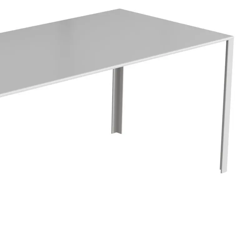 LessLess is a complete range of tables, rectangular and square, painted in different colors. An aluminum table the strength of which lies in a play on corners and folds. The external outline of the horizontal table top is very thin and stiffness and it is obtained by bending the aluminum sheet along inclined planes. Designed originally for the Fondation Cartier in Paris, the LessLess tables stand out for intrinsic elegance and light lines in every environment.