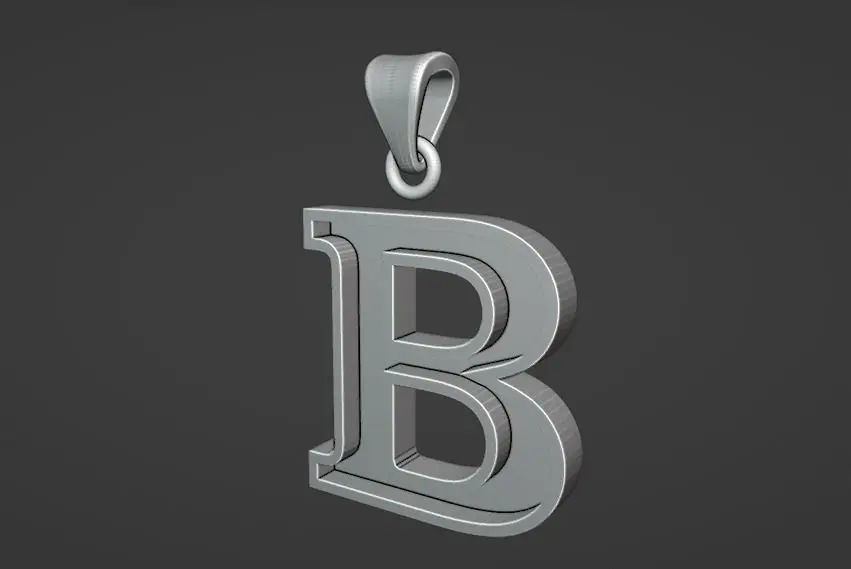 letter B pendant with bail, print ready stl, cavity ideal for stone enamel or resin inlay