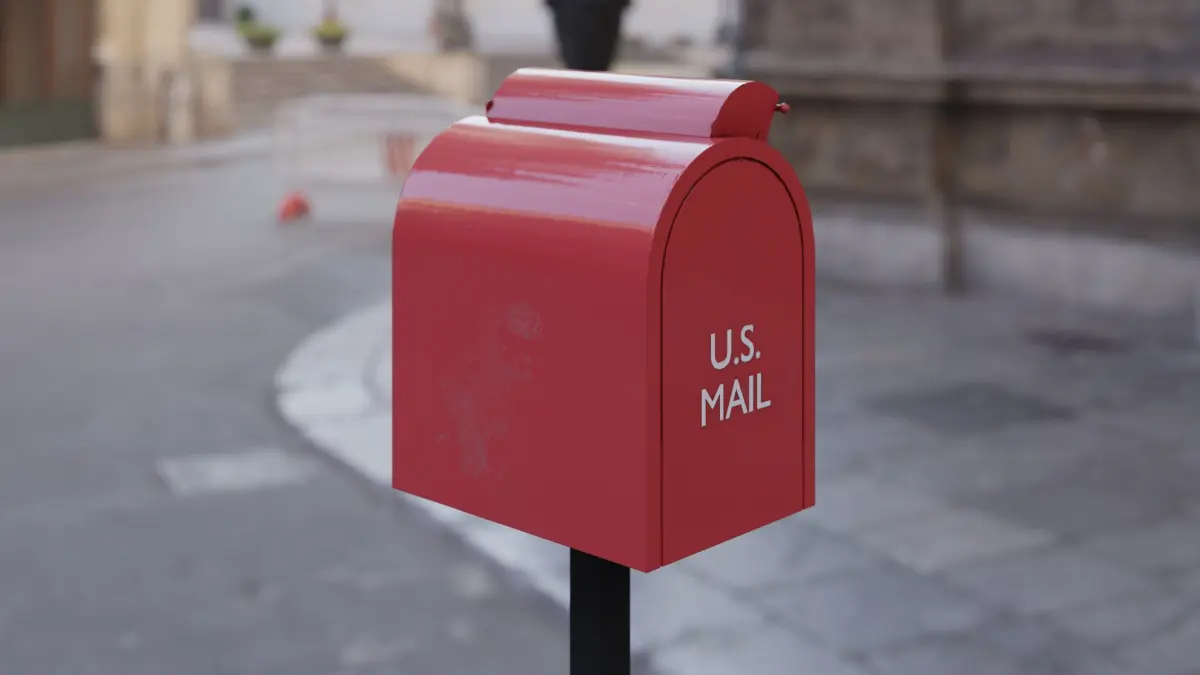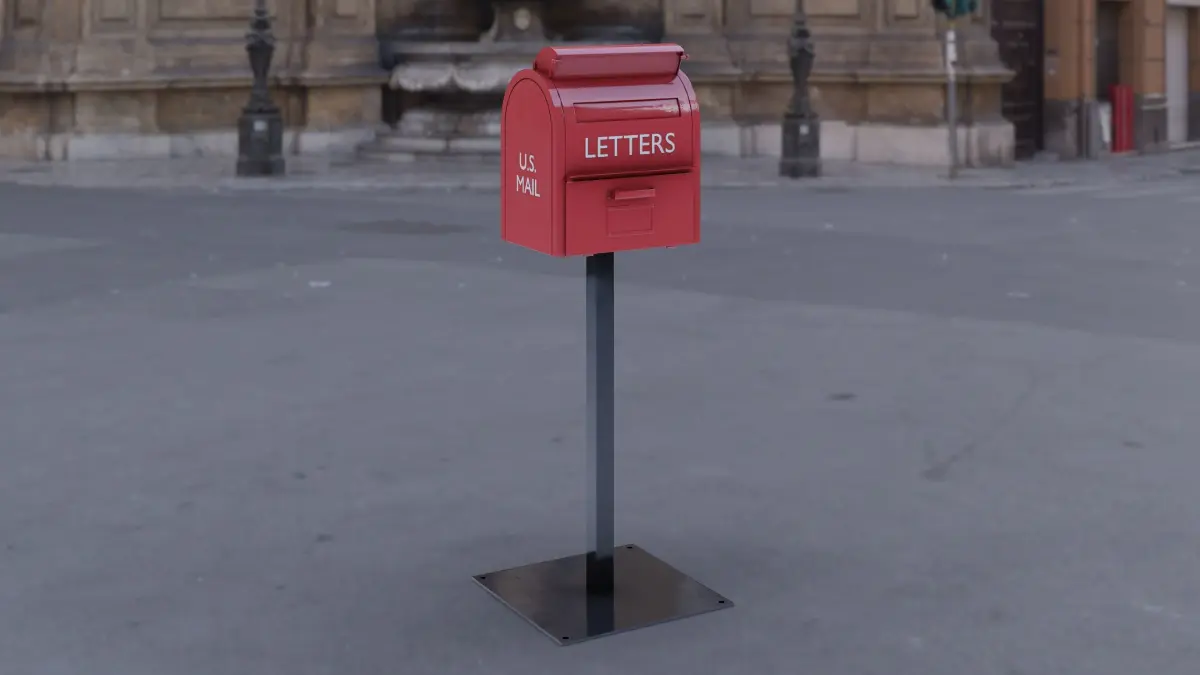 This is a low-poly 3d model of a typical U.S. Mailbox placed in a natural light setup.