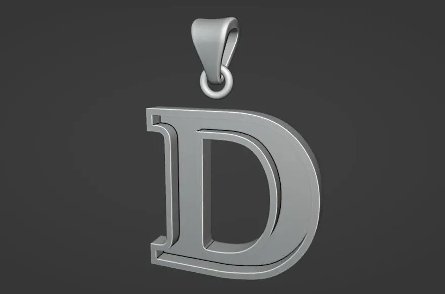 letter D pendant with bail, print ready stl, cavity ideal for stone, enamel, or resin inlay