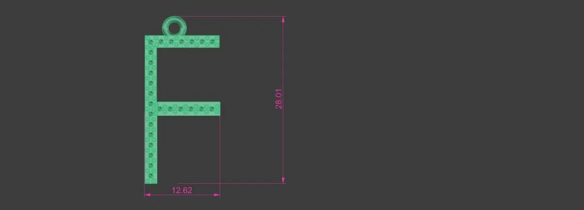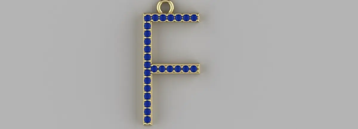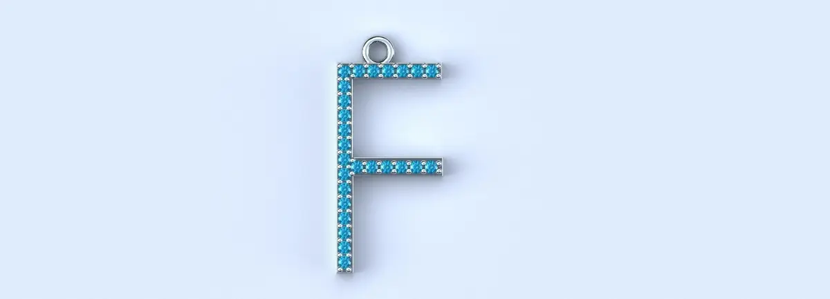 Diamond letter f pendant model up for sale. Features twenty six 1.5mm round stones. All other dimensions are in the last two pictures.