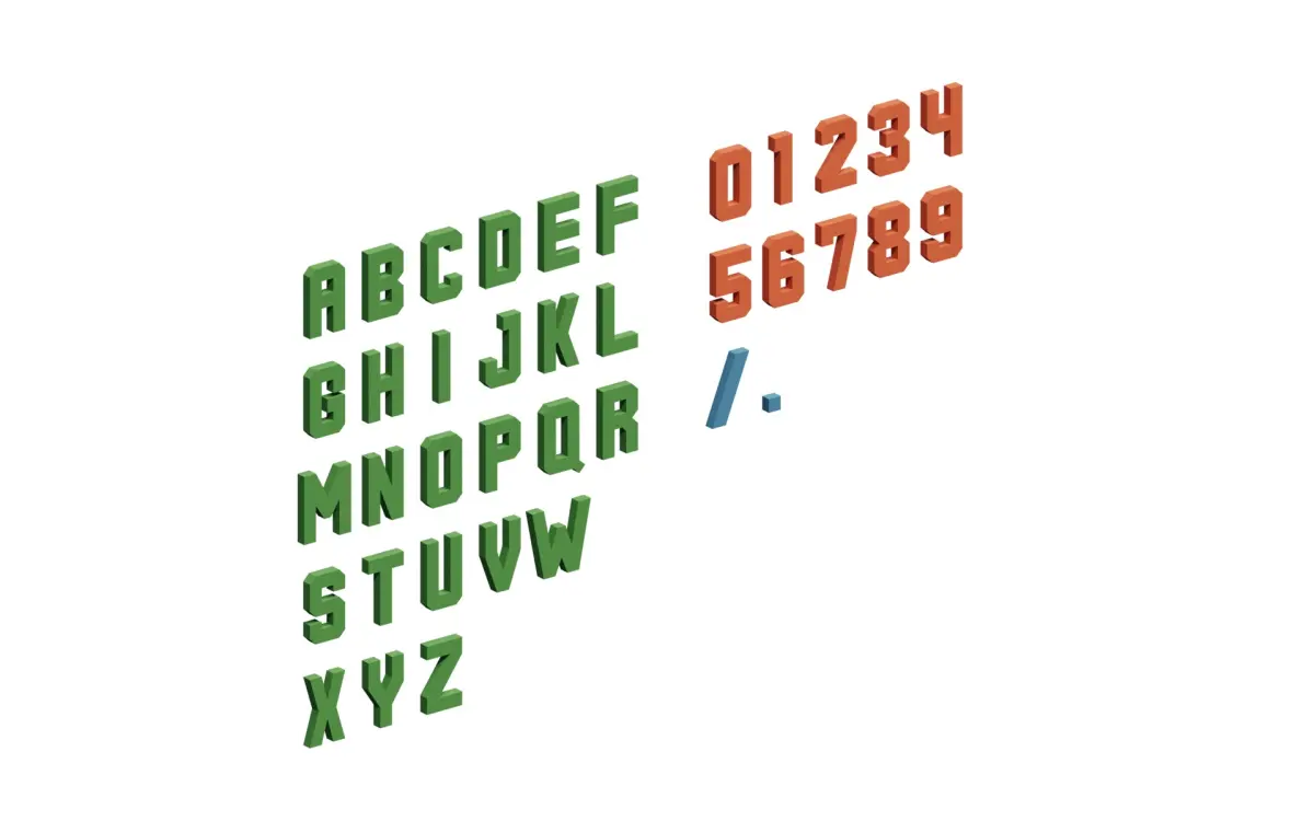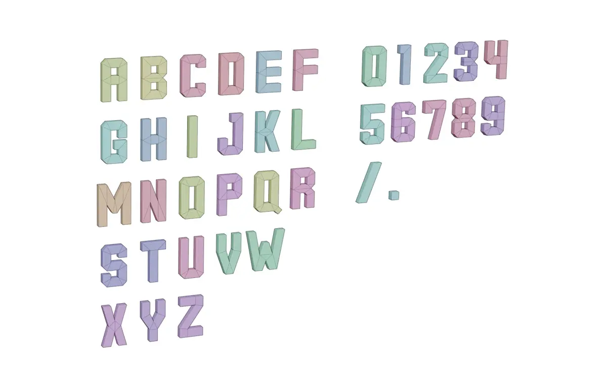 38 simple low poly stylized alphabet and numbers.