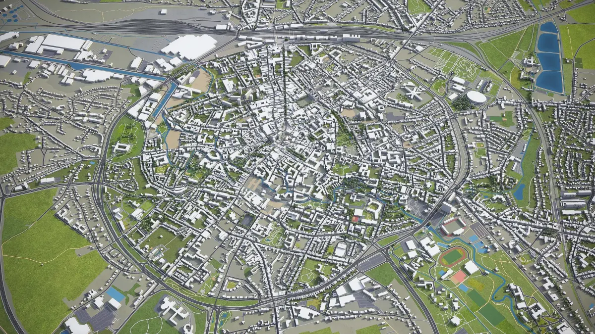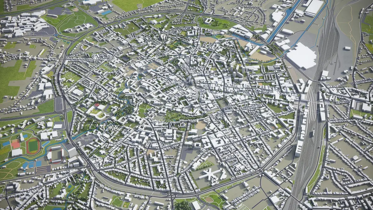 - Full city extents up to 100 x 100 km — or crop to an area of interest for better format compability and scene performance