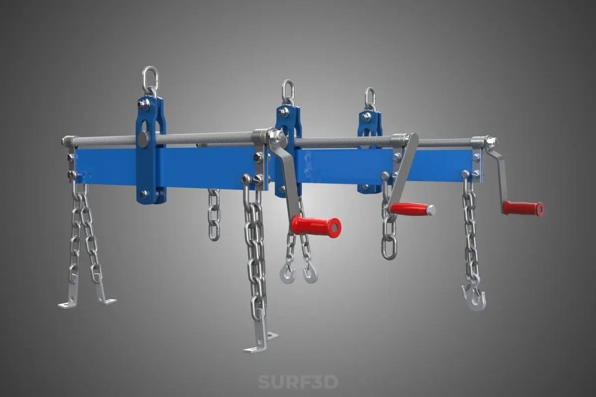 The device typically consists of a robust frame, usually constructed from heavy-gauge steel, designed to connect to the lifting hook of a hoist or crane at a single point. The lower side of the leveler features multiple attachment points (often four) to which chains, slings, or cables are connected, which in turn attach to designated lifting points or strong structural components on the engine or load. The critical feature of an engine load leveler is its integrated adjustment mechanism. This mechanism is commonly a threaded rod controlled by a crank handle or wheel, or a system of chains and sprockets, which allows the operator to effectively lengthen or shorten the distance between the hoist attachment point and the load attachment points. By manipulating this mechanism, the effective center of gravity of the suspended load is shifted relative to the overhead lifting point, thereby controlling the tilt or angle of the load.