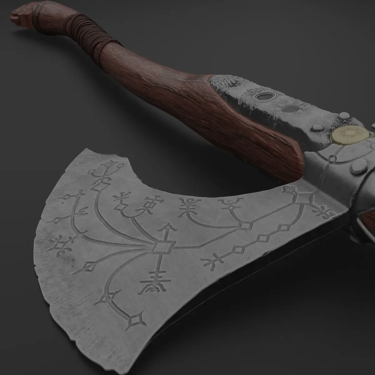 Leviathan Axe from God of War. High poly sculpted model. Includes 4 materials. Each materials has 4 texture maps. Each texture set with 4096x4096 resolution.