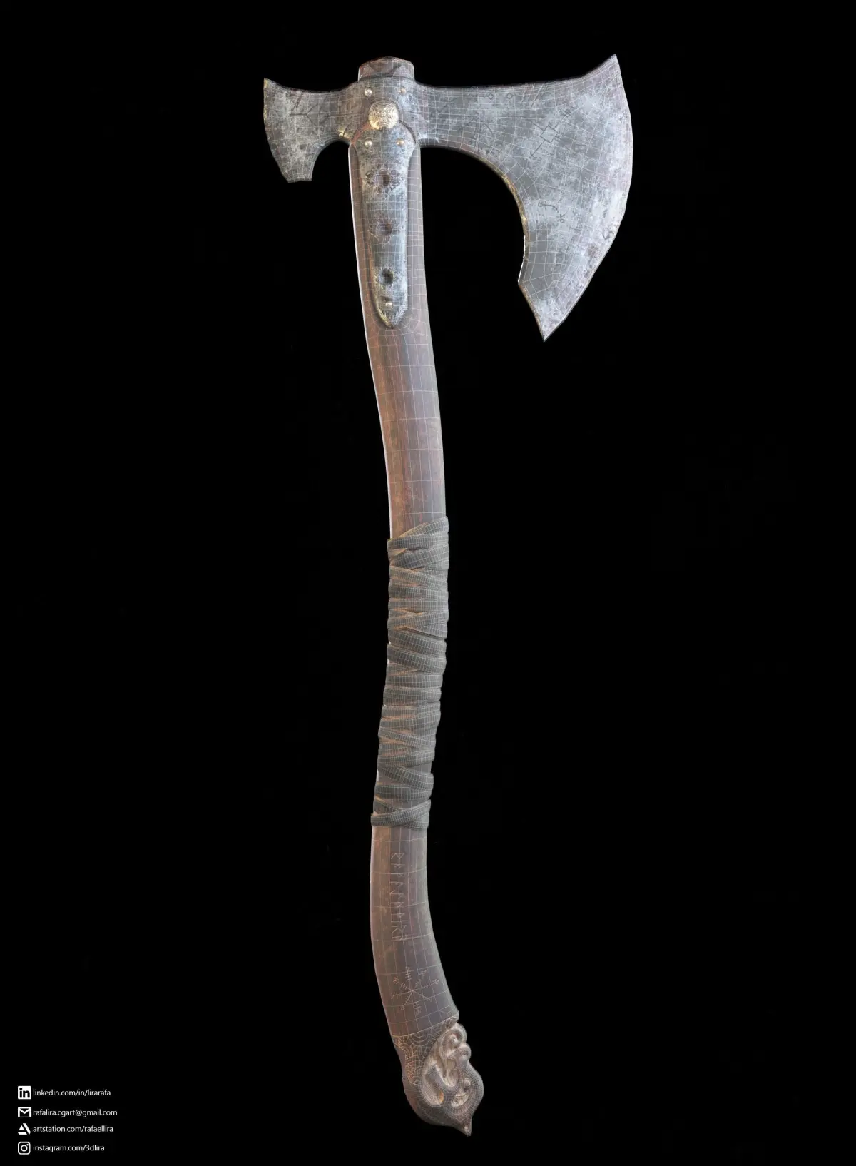I created a custom version of the Leviathan Axe , incorporating my own unique concept of the weapon. Using a combination of 3ds Max and ZBrush, I modeled the axe and then used TopoGun for the retopology process. PBR texturing was completed in Substance Painter, and the final rendering was done using Marmoset Toolbag.
