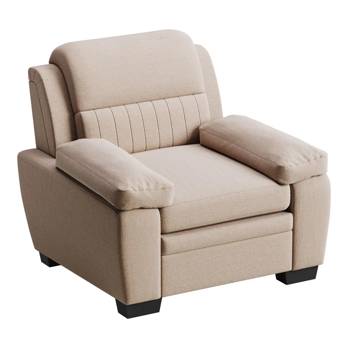 Name: Lexicon VegaFormat: 3Ds Max 2016Export: FBX, OBJRender: Corona Renderer 7Polys: 163158Verts: 163050Units: MillimetersDimension: 3139.63 x 905.04 x 835.79Description: The Lexicon Vega armchair offers a stylish blend of contemporary design and everyday comfort. Upholstered in soft fabric with subtle texture, it features gently flared armrests and supportive cushioning for a cozy seating experience. The clean lines and neutral tones make it versatile for various interior styles, from modern living rooms to casual lounge areas. Its compact yet inviting form makes it suitable for both small apartments and larger spaces looking for an elegant accent chair.