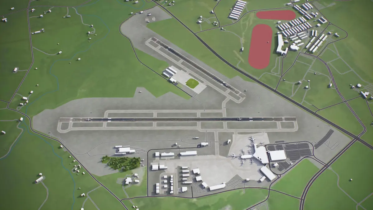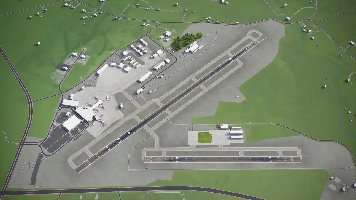 This is exact and accurate to-scale 3D model of Lexington Blue Grass Airport (LEX) and its surrounding area based on GIS data (January 2022)