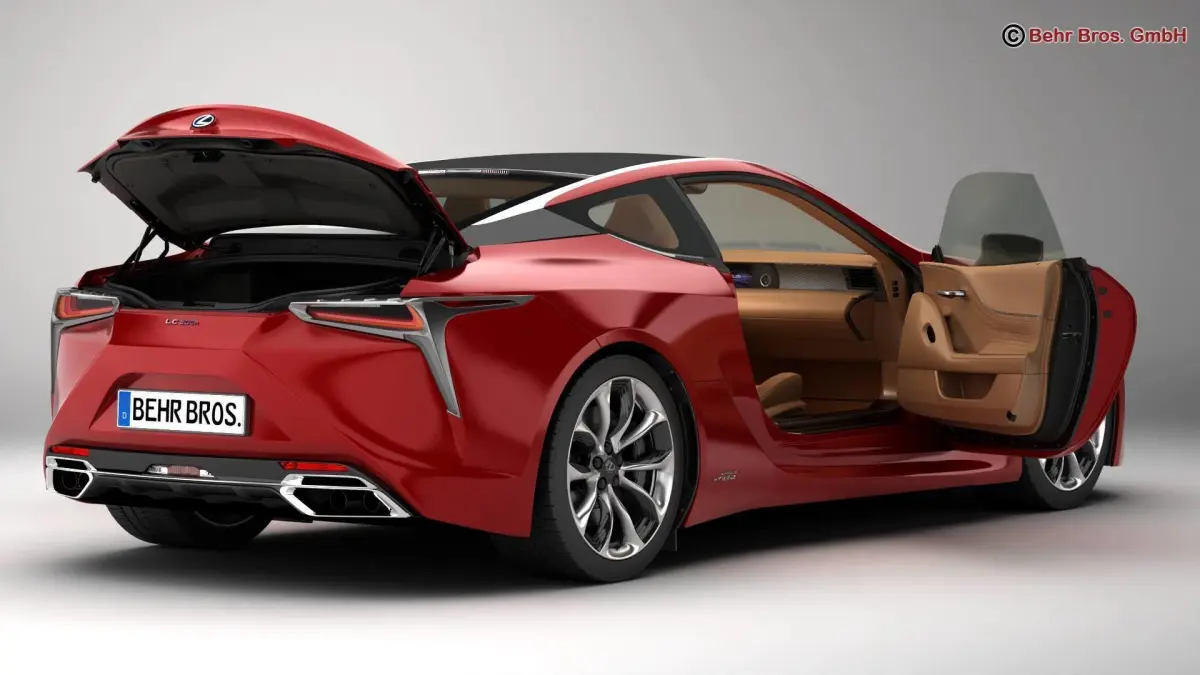 Accurate very high definition Lexus LC 500 Hybrid 2018 EU version model with highly detailed interior fully textured. Headlights and taillights are modelled, doors and trunk lid can be opened. The model includes modelled tires.