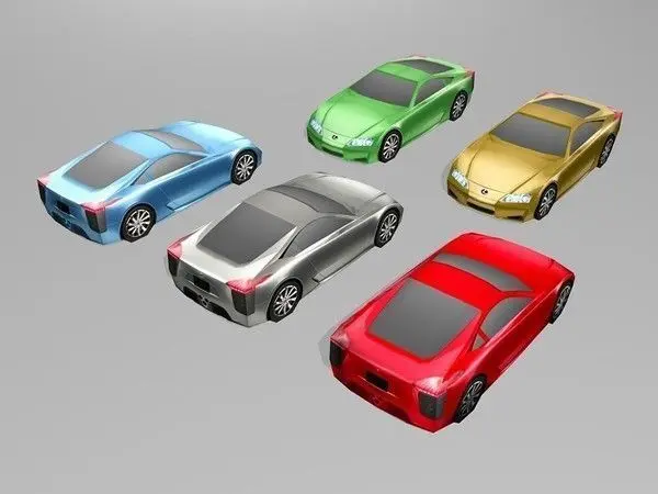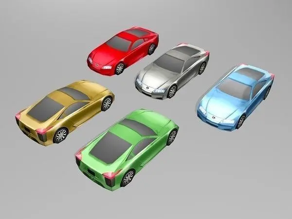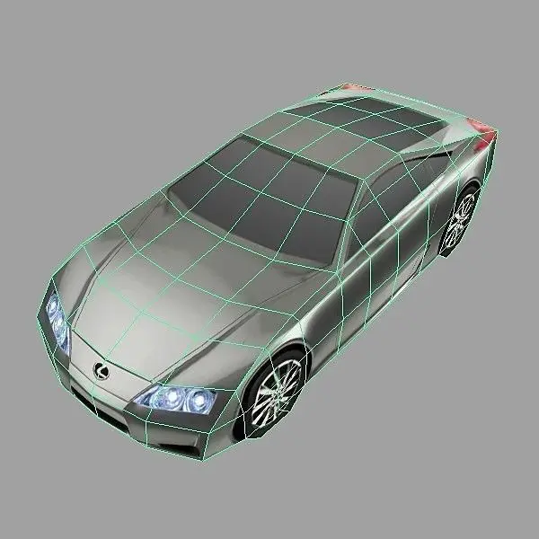 Low poly Lexus LF-A car model, built with Maya 7, clean topology, no N-gons, mostly quads and just few triangles.Maya 7 (.ma, .mb), OBJ (.obj with .mtl), 3ds Max 7 (.max and .3ds) format included.Polygons: 150 quads/ 282 trianglesVertices: 160Model is mapped on single 512×512 pixels texture map.Textures included in textures_LF-A.zip file:-512×512 .bmp format color maps (5 colors)-512×512 .tga format color maps (5 colors)-512×512 .psd working file