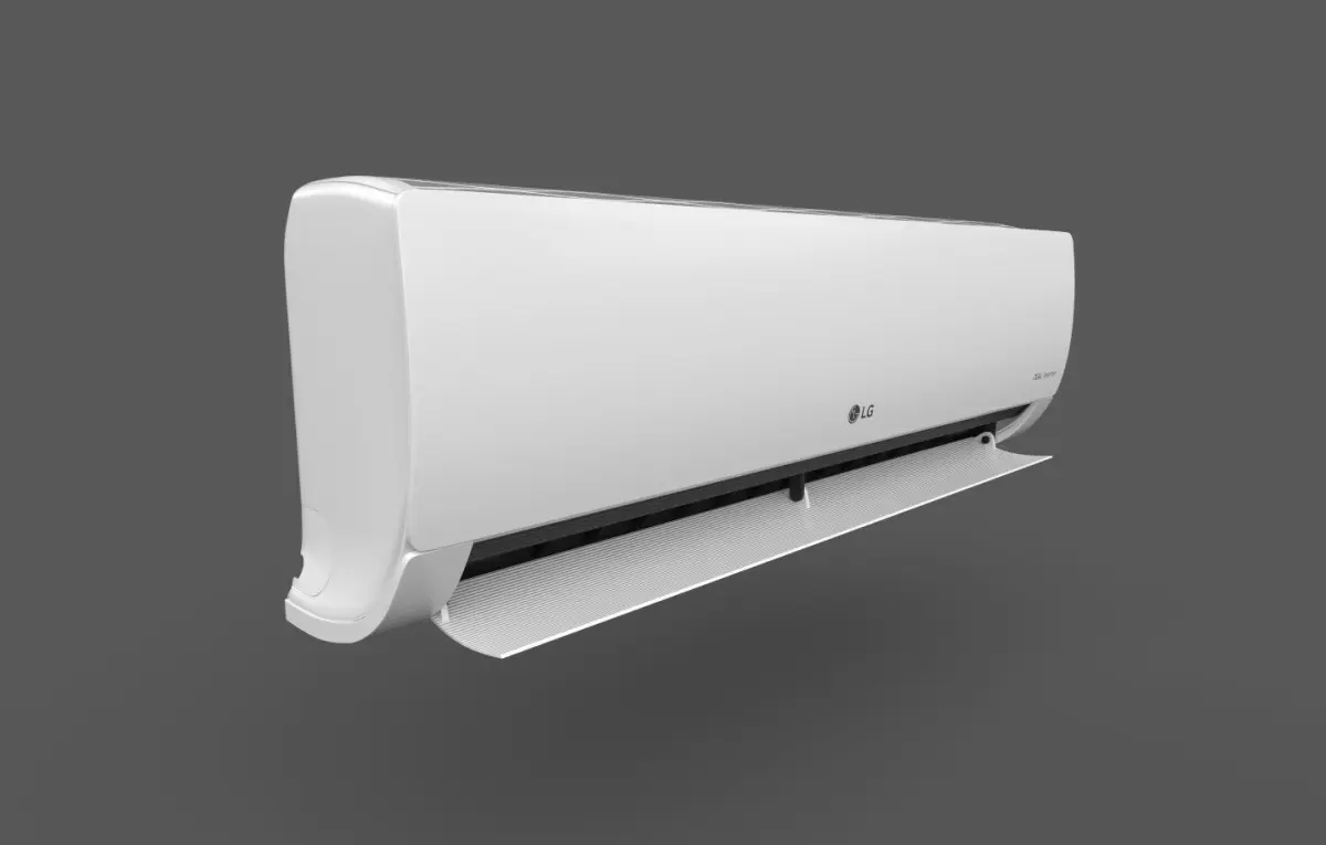 This is a detailed 3D model of an LG Dual Inverter Air Conditioner, ideal for use in product visualization, interior design projects, commercials, or any realistic architectural renderings.