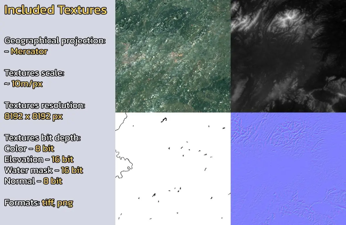 Warning: minor clouds/artifacts may be present on the diffuse color satellite texture due to the nature of the dataset. Check product images.