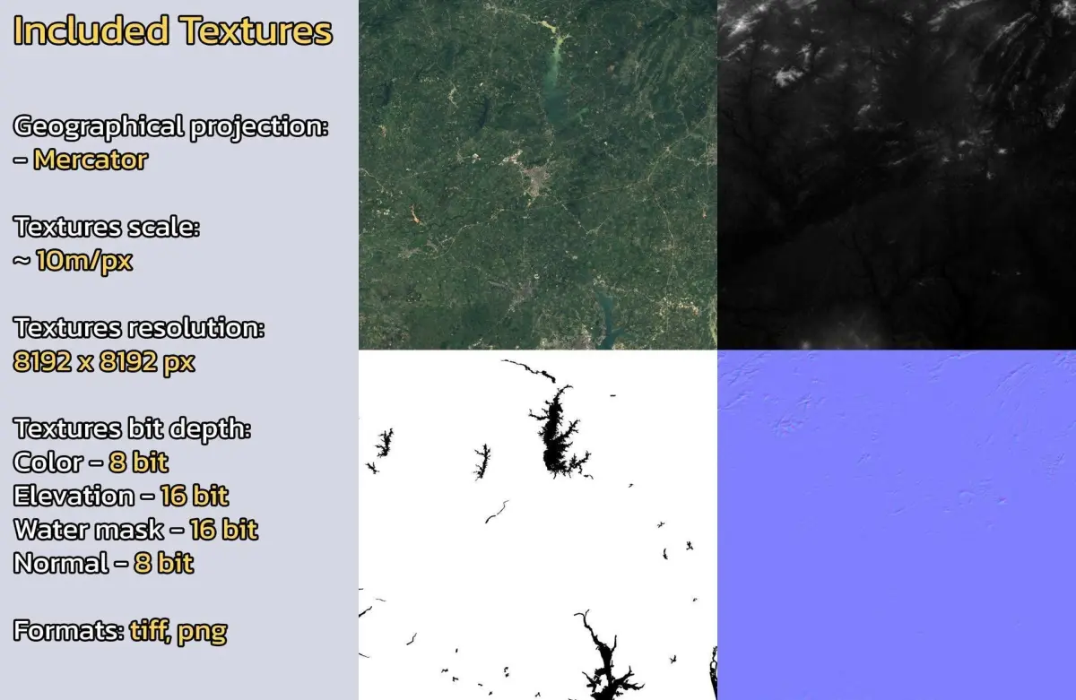 Warning: minor clouds/artifacts may be present on the diffuse color satellite texture due to the nature of the dataset. Check product images.