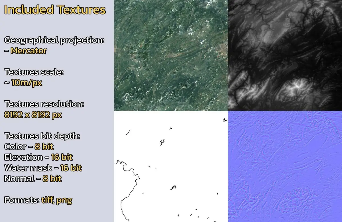 - Textures resolution: ~10m/px