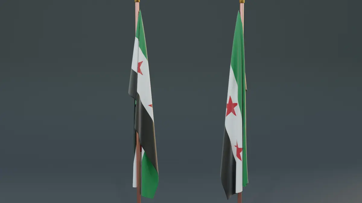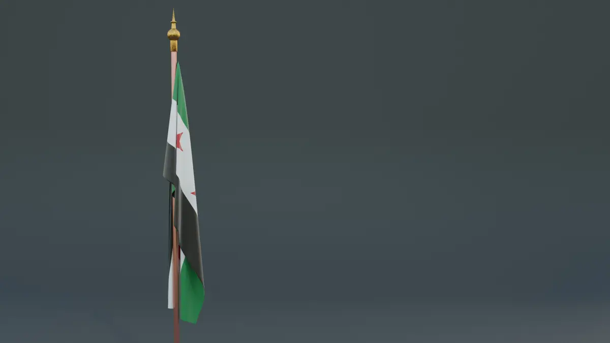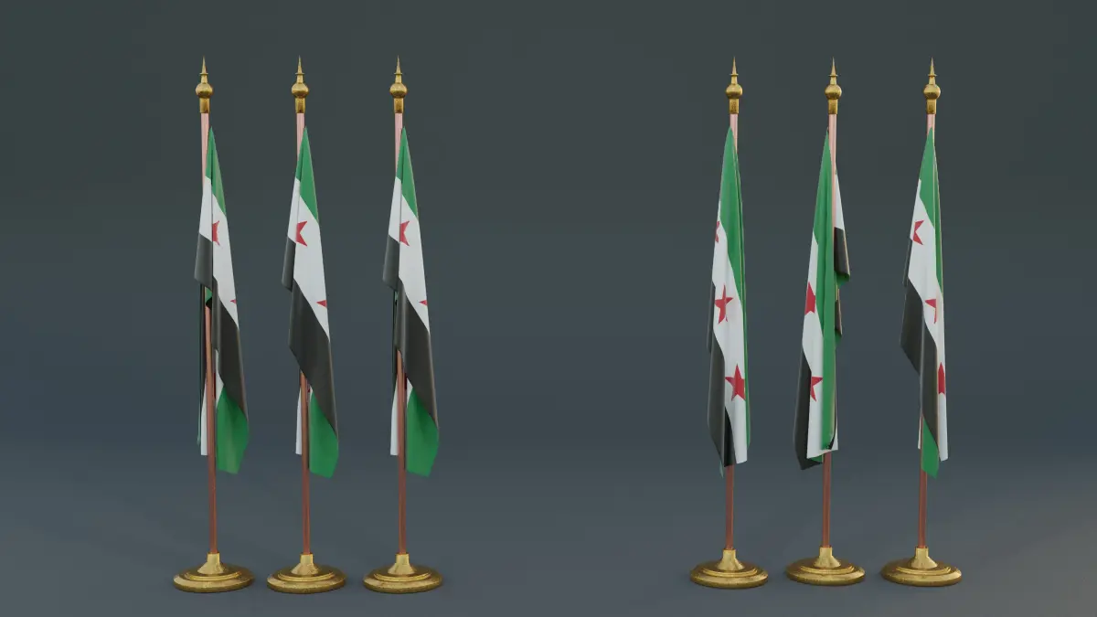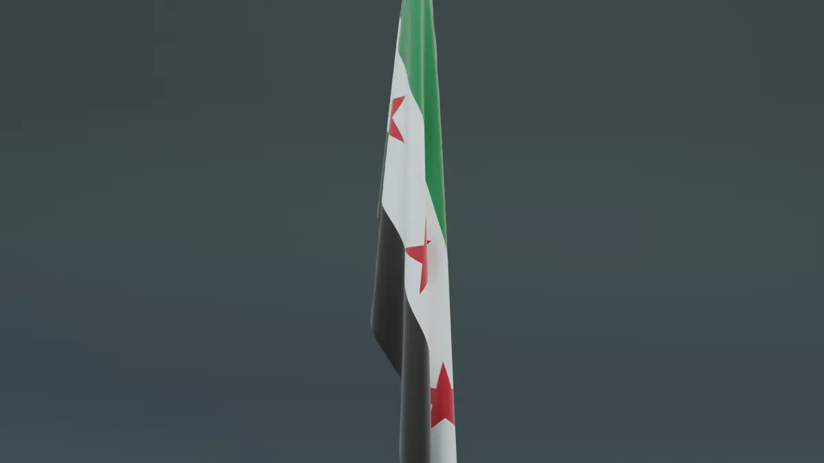 - The flag, with its green, white, and black stripes and three red stars, waves dynamically as if caught in a gentle breeze. Its detailed texture and vibrant colors reflect the determination and hope of the Syrian people. The simplicity of the model emphasizes the flag's powerful symbolism, serving as a beacon of unity and liberation.