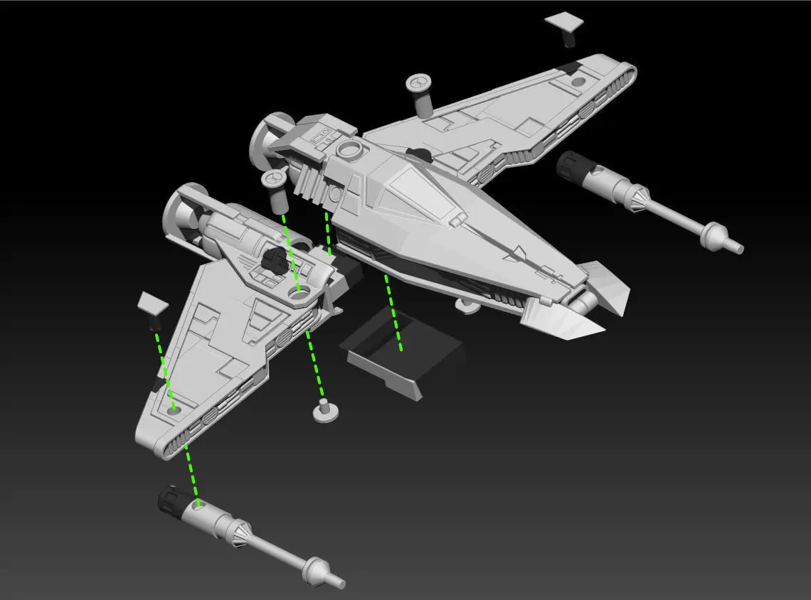 The wings are foldable, so when assembling ensure the wings and cannons rotate and the engines can slide in and out.