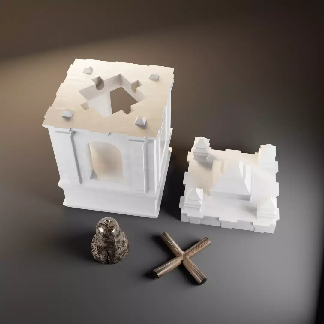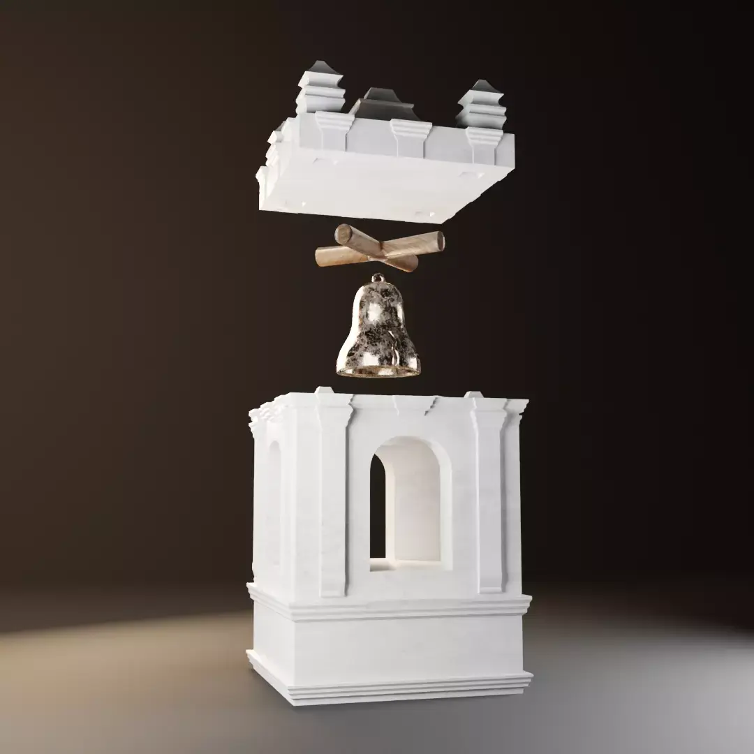 Bell tower model with a broken bell, just like your heart and mine. It consists of 4 pieces ;):