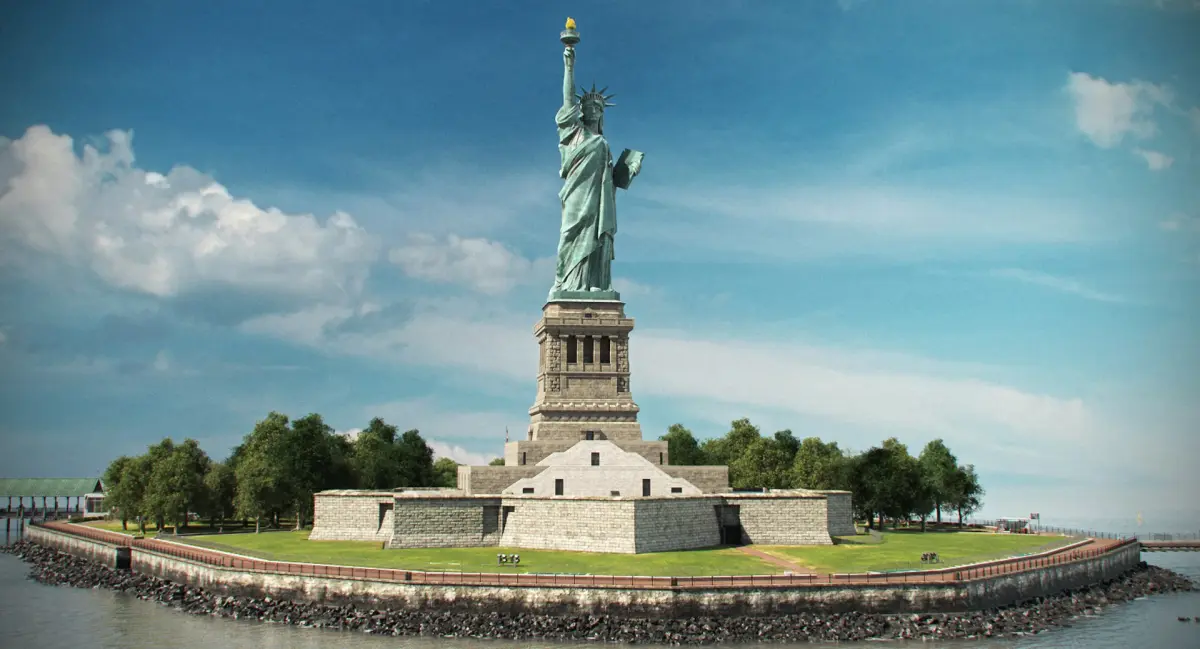 Very unique ultra detailed 3d model of the Libery island with statue of liberty with trees, vegetation and all known details