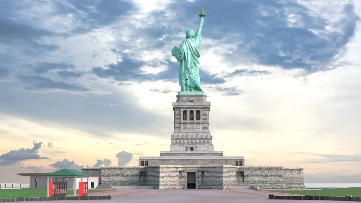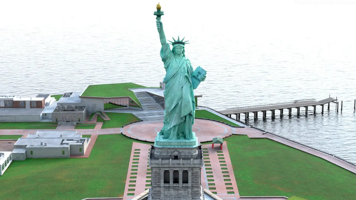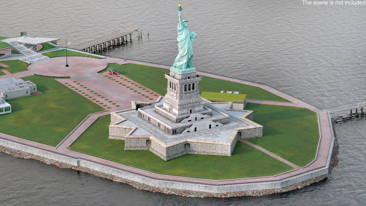 Liberty Island without Trees is a three-dimensional model of the iconic Statue of Liberty and its surrounding island.