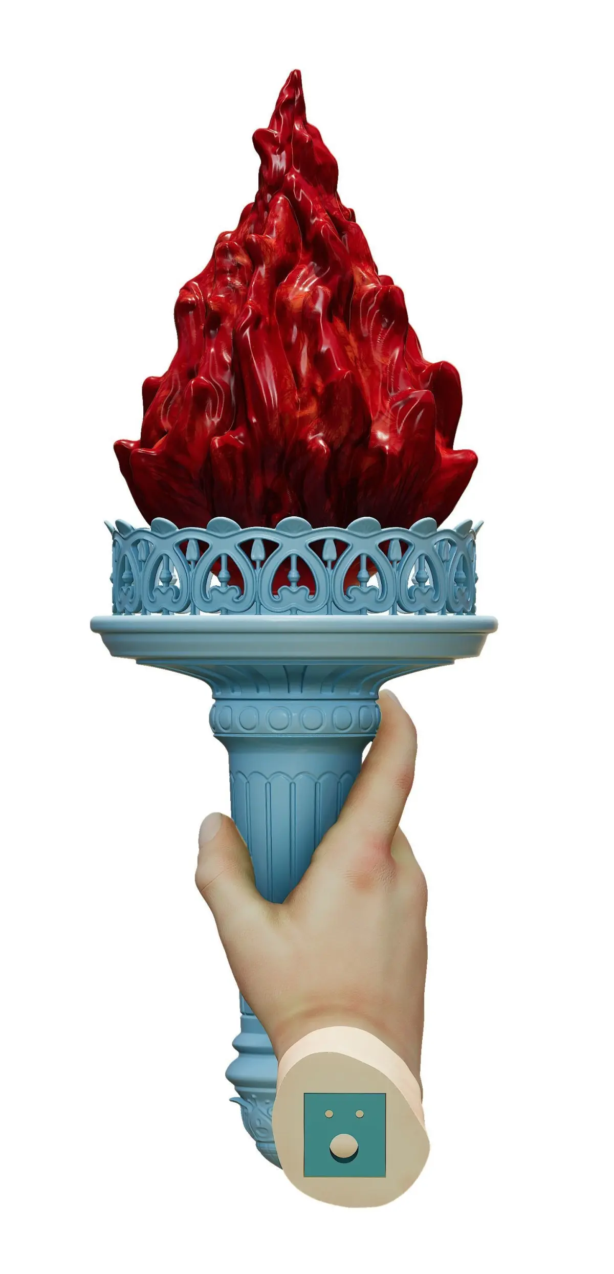 Liberty torch lamp is made for mounted on the wall. It is made of 3 elements: the lampshade, the hand with the torch and the rod that is mounted on the wall. An E14 socket can be placed in the torch.Enjoy