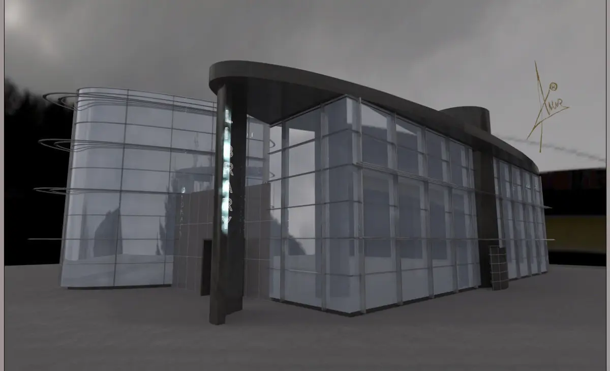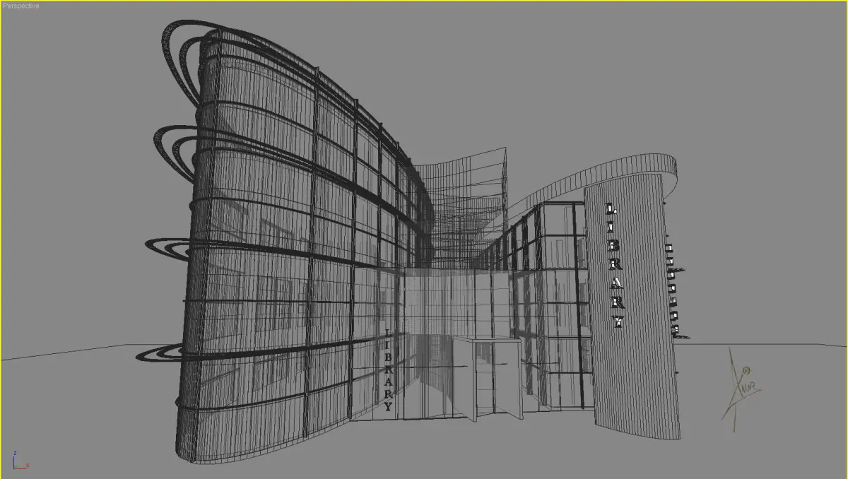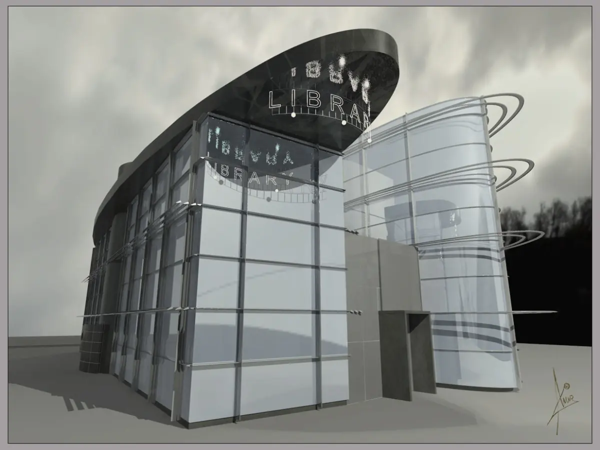 Library - public building design.3D model with accurate modeling by architectural principles.Measures in the model represent the actual professional dimensions.Materials used - standard and pro materials.