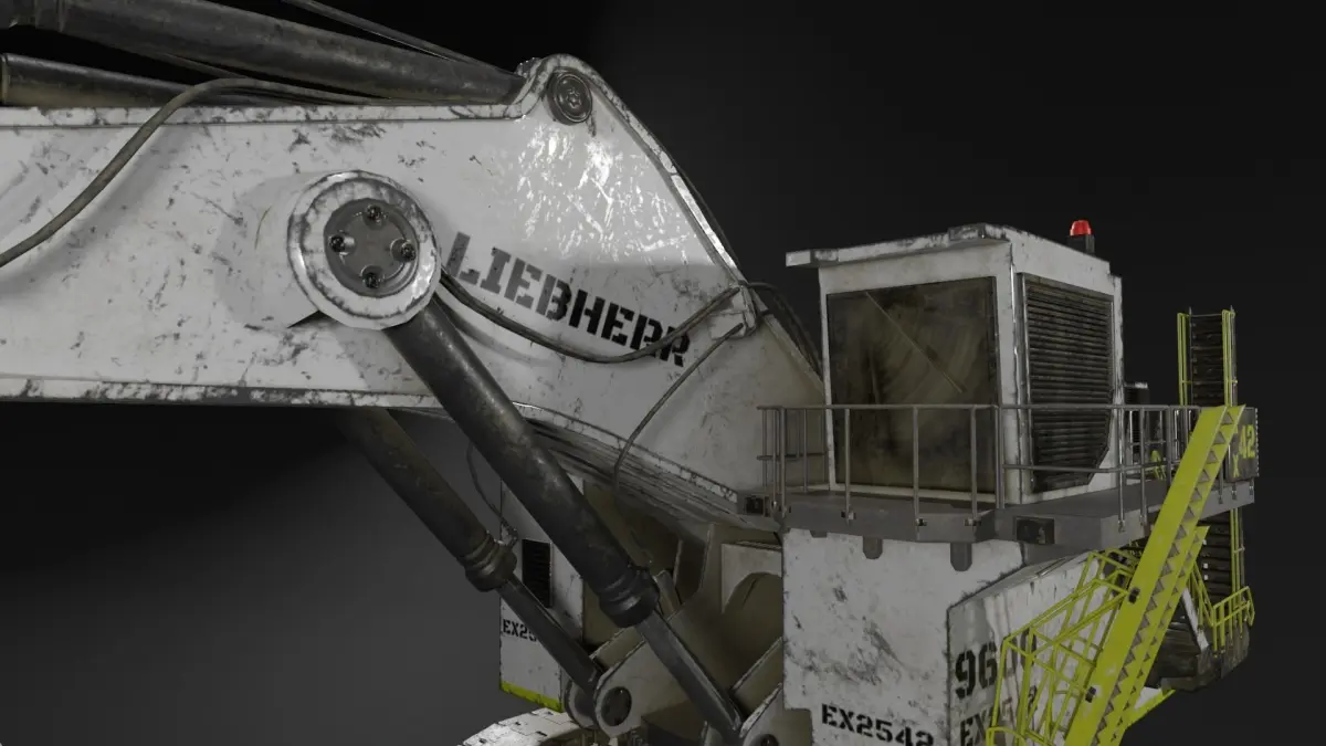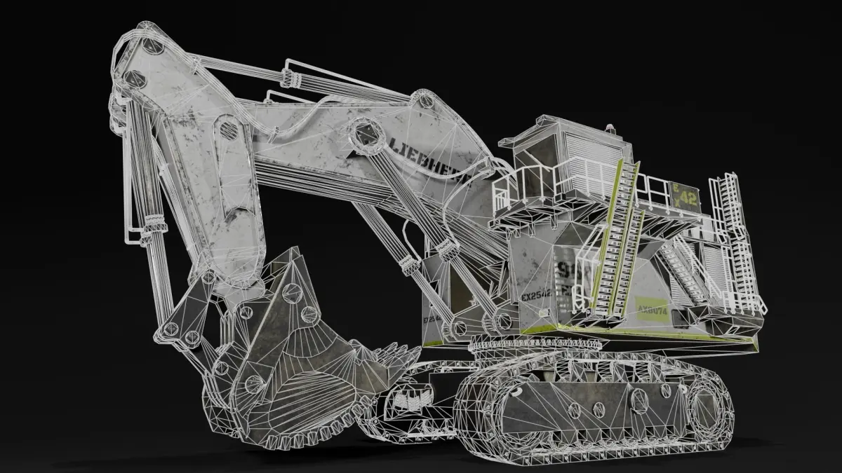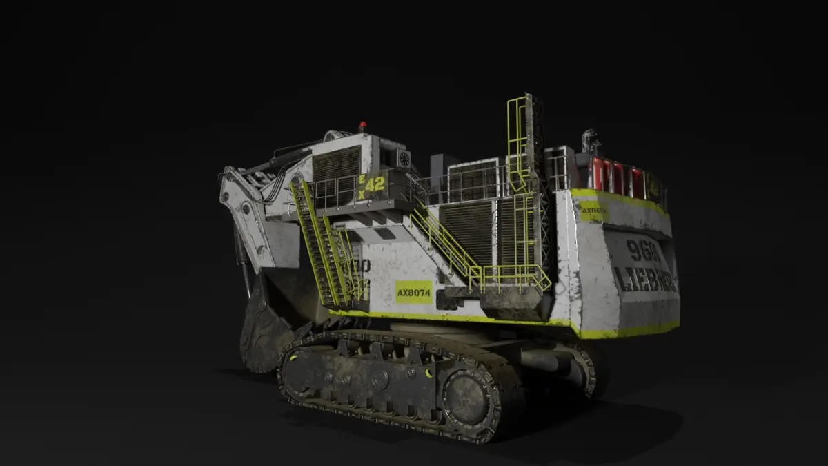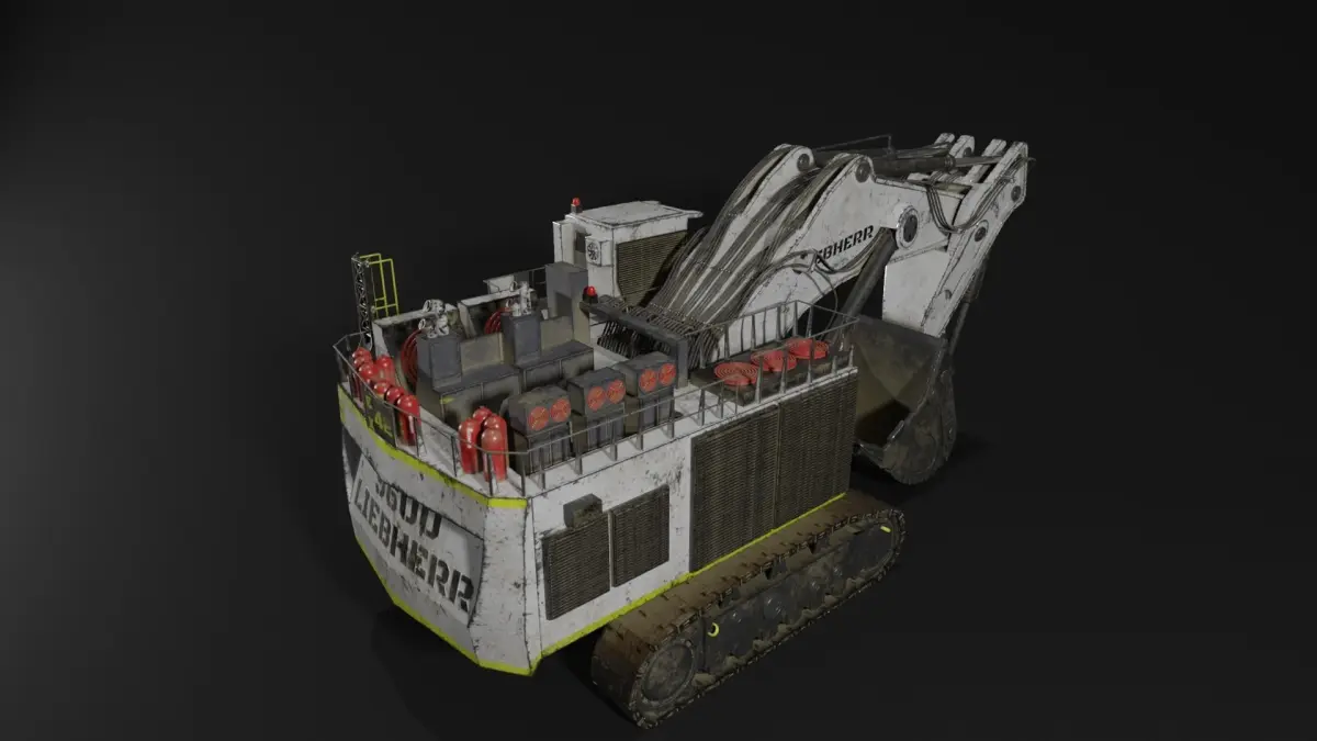 3d model of an industrial excavator liebherr 9600, the model is triangulated and ready for export to the game or any other project of yours, 2k resolution textures are in the archive.