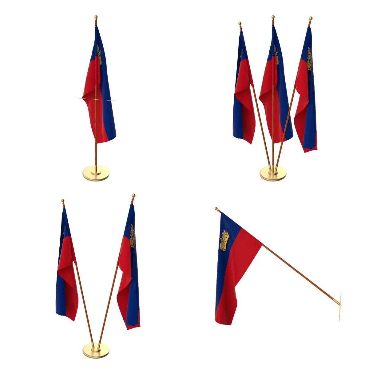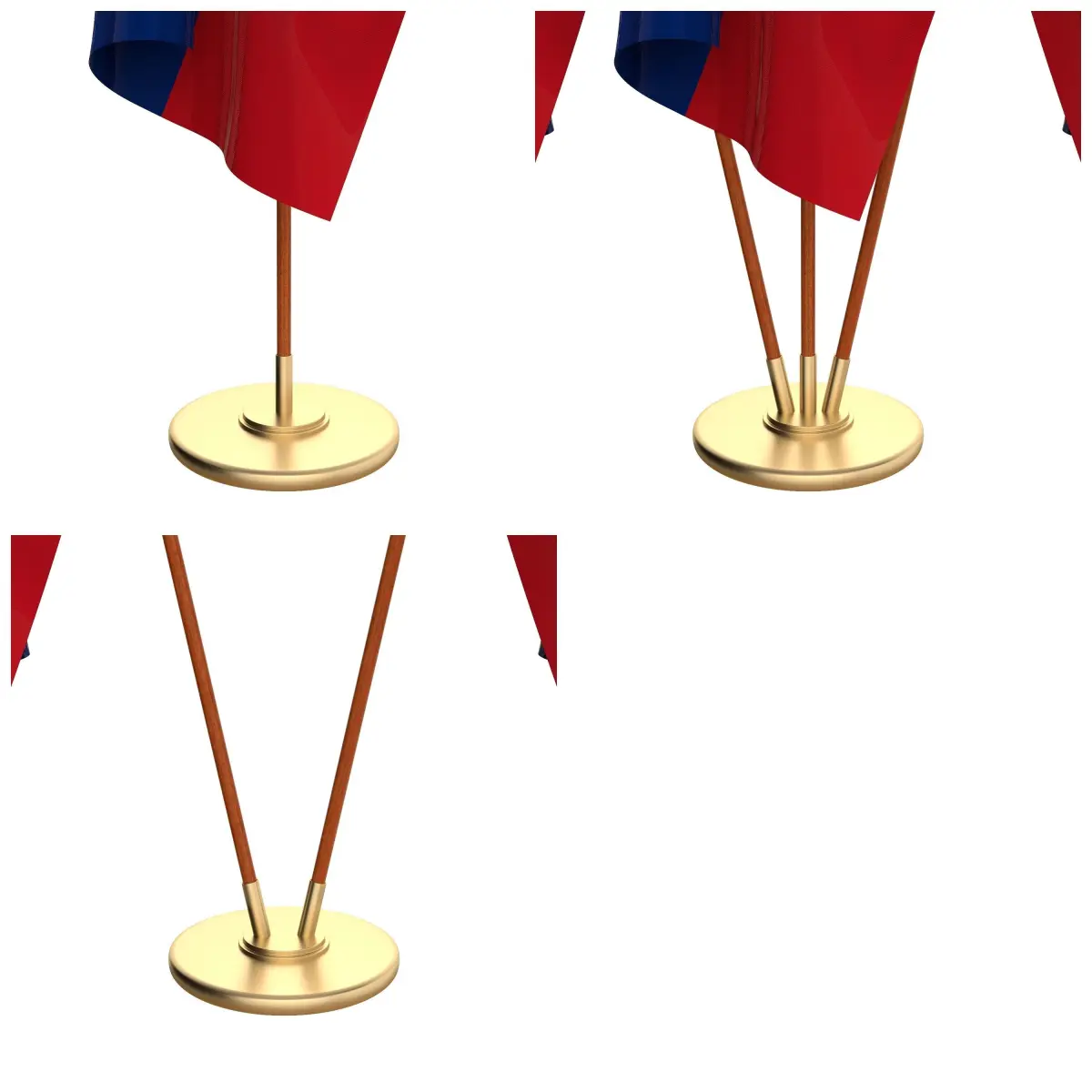 Set of four flag setups(exterior flag and three different office flags).