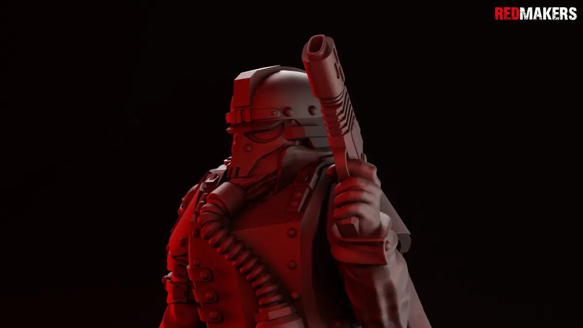 Death squad lieutenant. Scaled for 28 mm tabletop.