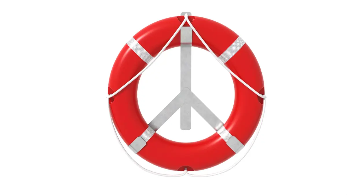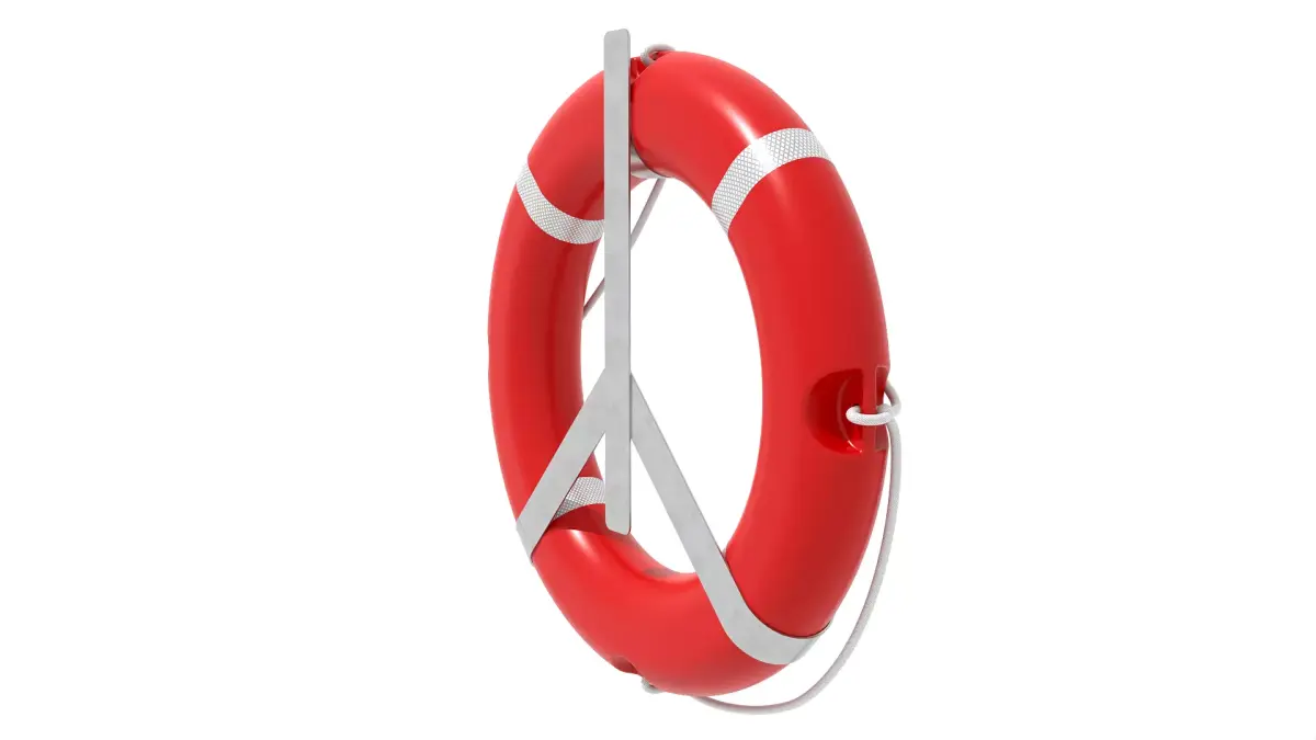 Detailed model of a life buoy / life ring incl. rack, scaled 1:1.