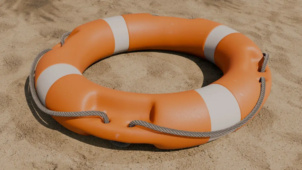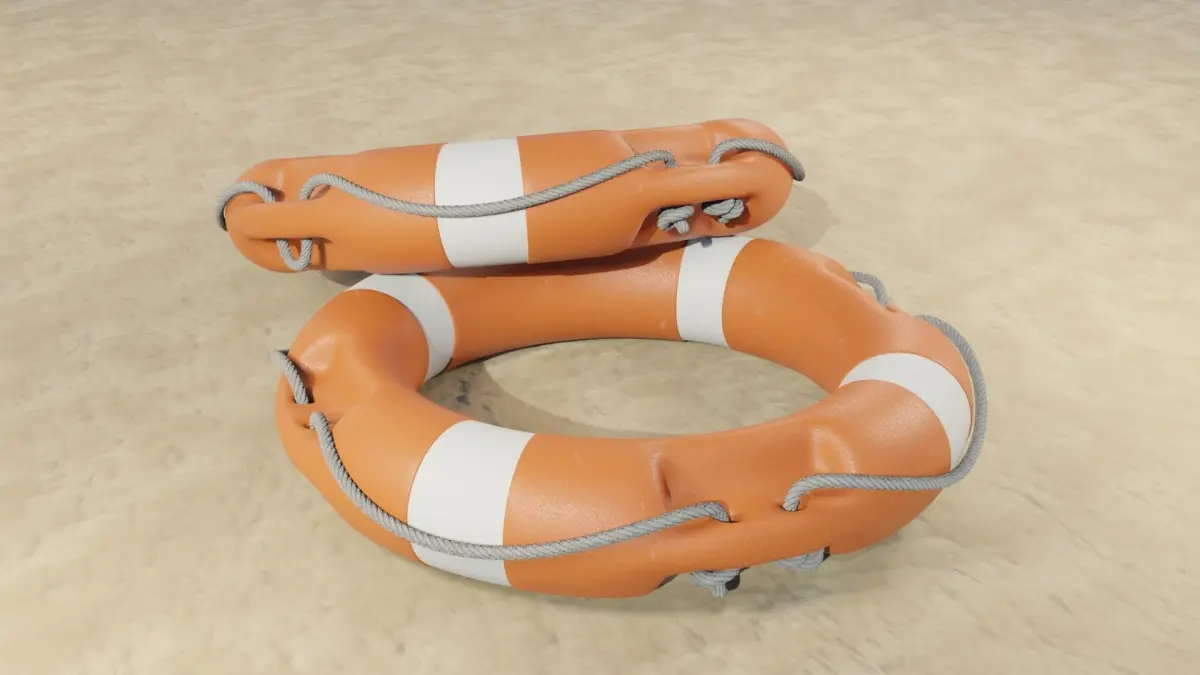 Beach lifebuoy. Commonly used to put lifeguards in rescue of people on the high seas. high poly template created in blender.The model has PBR textures, with the number of