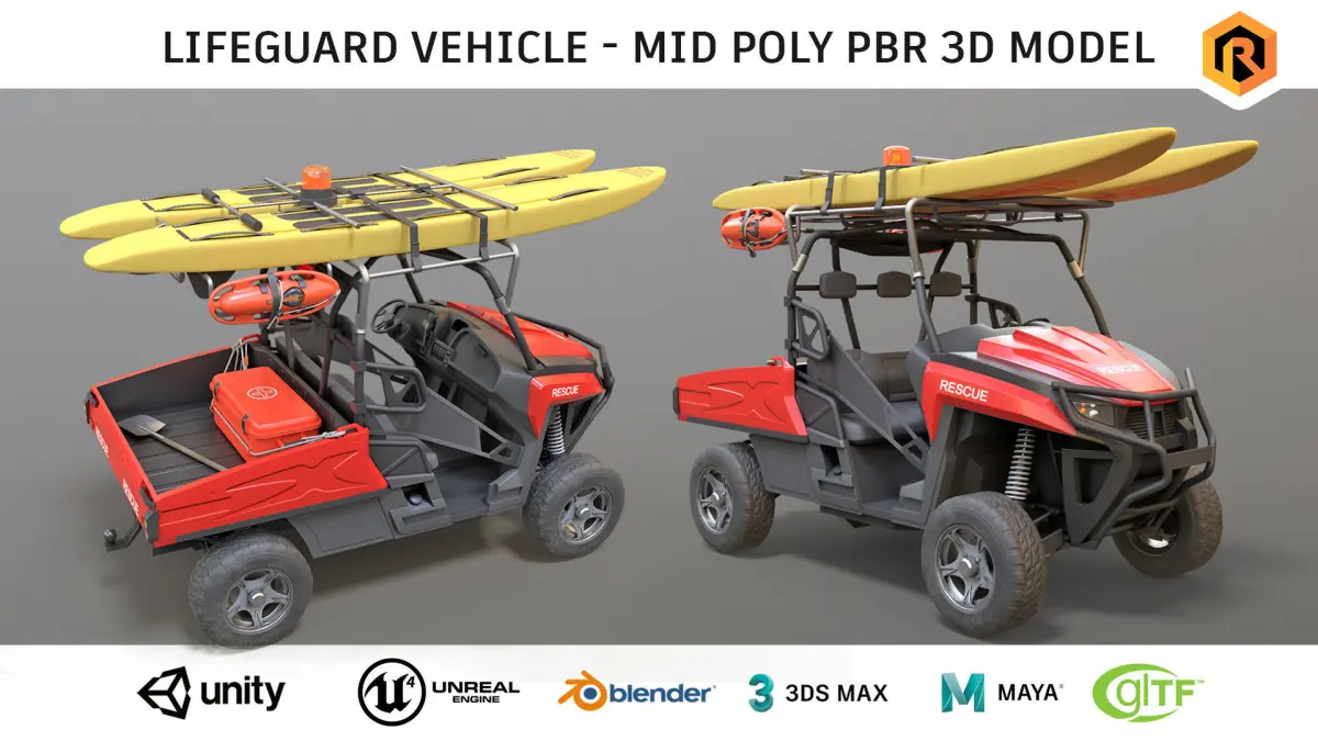 High-quality low-poly PBR 3D model of Lifeguard Buggy.