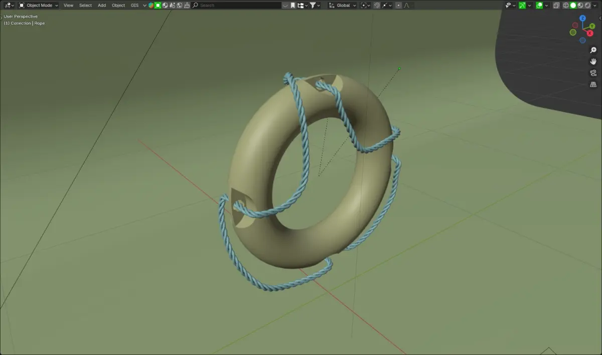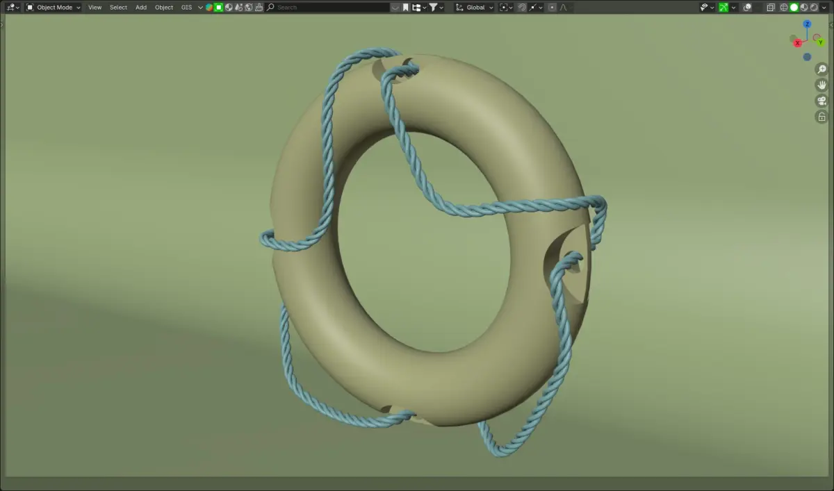 simple LifeSaver with a rope attached to it, the rope position is still changeable by selecting and changing the position of the curve: PathRope.All the textures are packed in the blend file, and all of them are procedural(no images).The rope have 4 modifier, i recommend to turn OFF the viewport rendering of this modifiers before changing the position of the Lifesaver because not turning OFF can create a lot of lag.