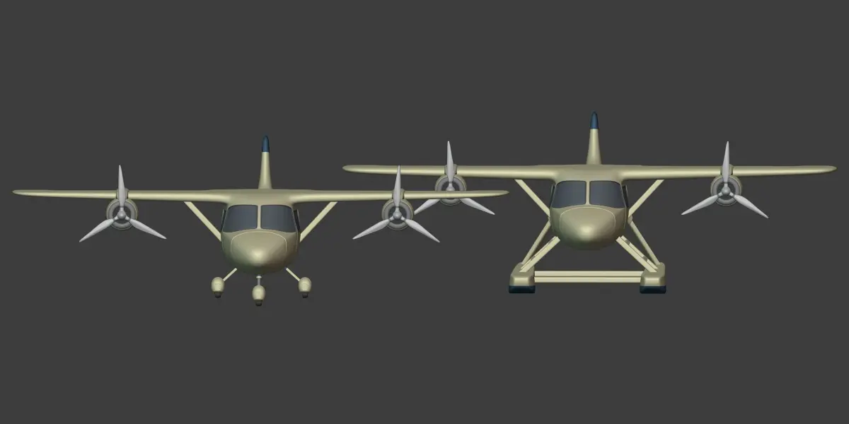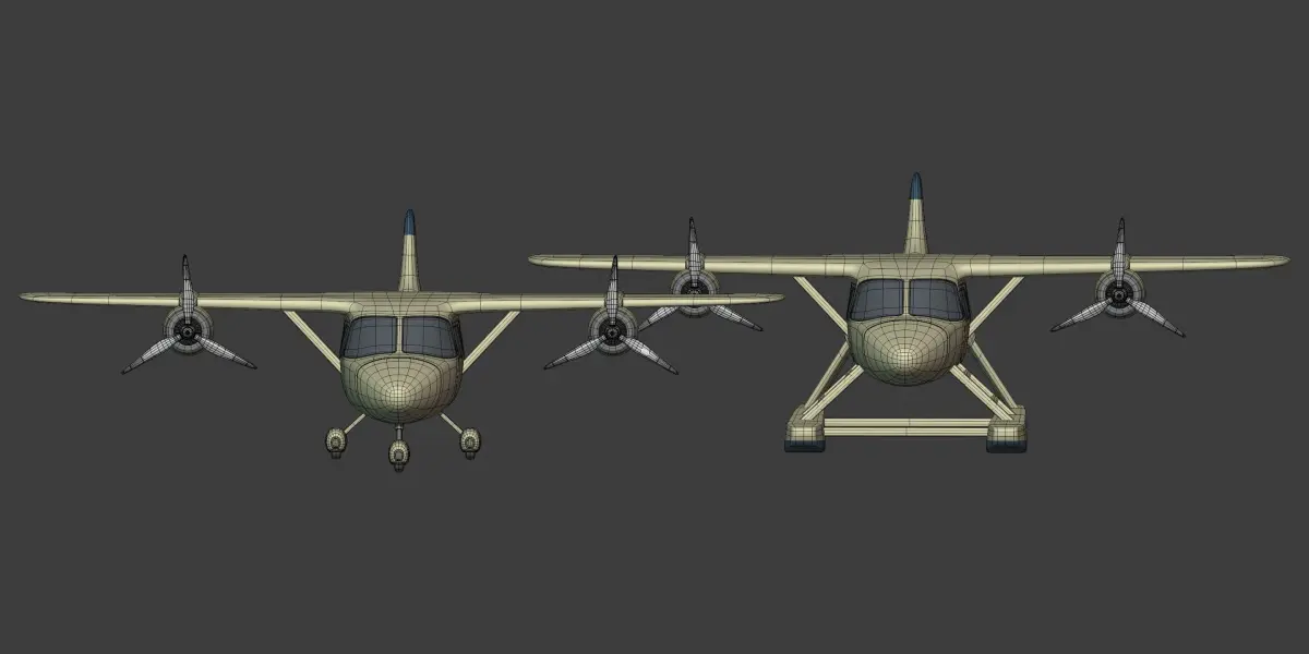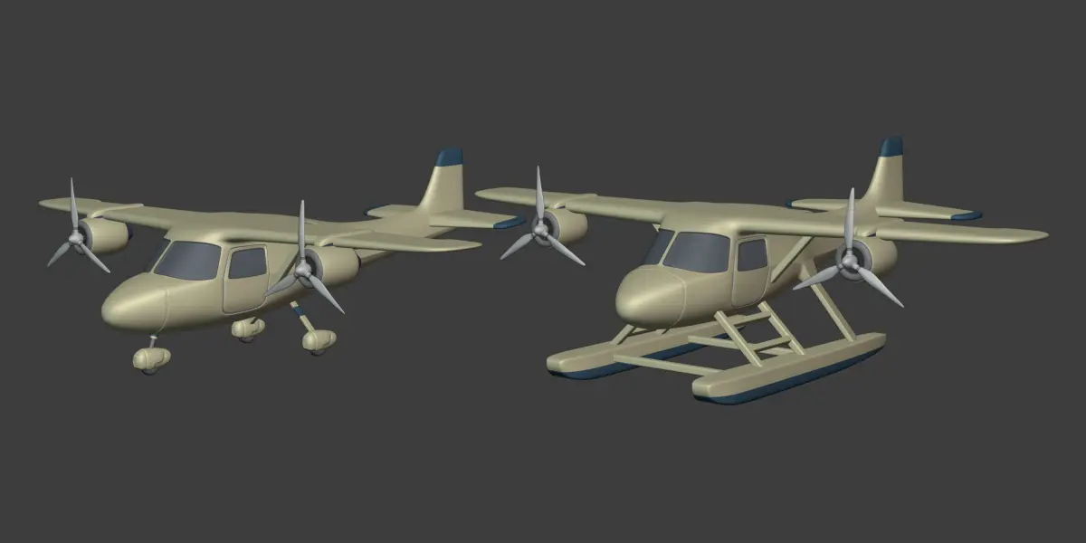 Light Aircraft - Airplane - Plane - Seaplane - Floatplane Low-poly 3D model