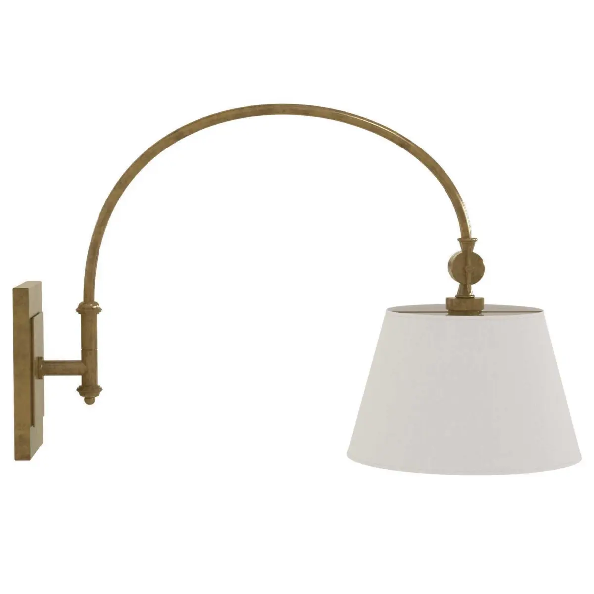 Light Antique Brass Swing Arm by Currey Company perigoldA fantastic swing arm sconce finished in the popular antique brass is especially perfect over a bedside table. Topped with a fabric shade this is the new accessory for any nightstand or reading nook.FeaturesComes with swing armThe new regulations allow businesses to avoid specifying a chemical in their warnings, but only if the warning is provided on the product, contains the pictogram, and states the following for exposures to both a listed carcinogen and a reproductive toxicant: “Warning: Cancer and Bulb type: 25W Edison bulbProduct DetailsPower Source: HardwiredDry, Damp or Wet Location Listed: DryShade IncludedShade Material: Fabricdjustable ExtensionMax Extension Length (in.)26.25''Other DimensionsOverall16.25'' H x 9.5'' W x 26.5'' DShade6'' H x 9.5'' W x 9.5'' DOverall Weight4 lb.