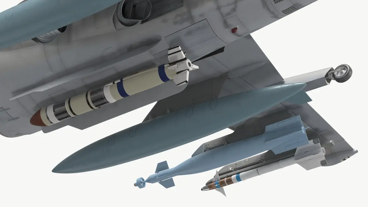 Light Attack Jet with Glide Bomb and Pods Gray is a 3d model of a combat aircraft, often used in air defense and military operations as a formidable fighting machine.