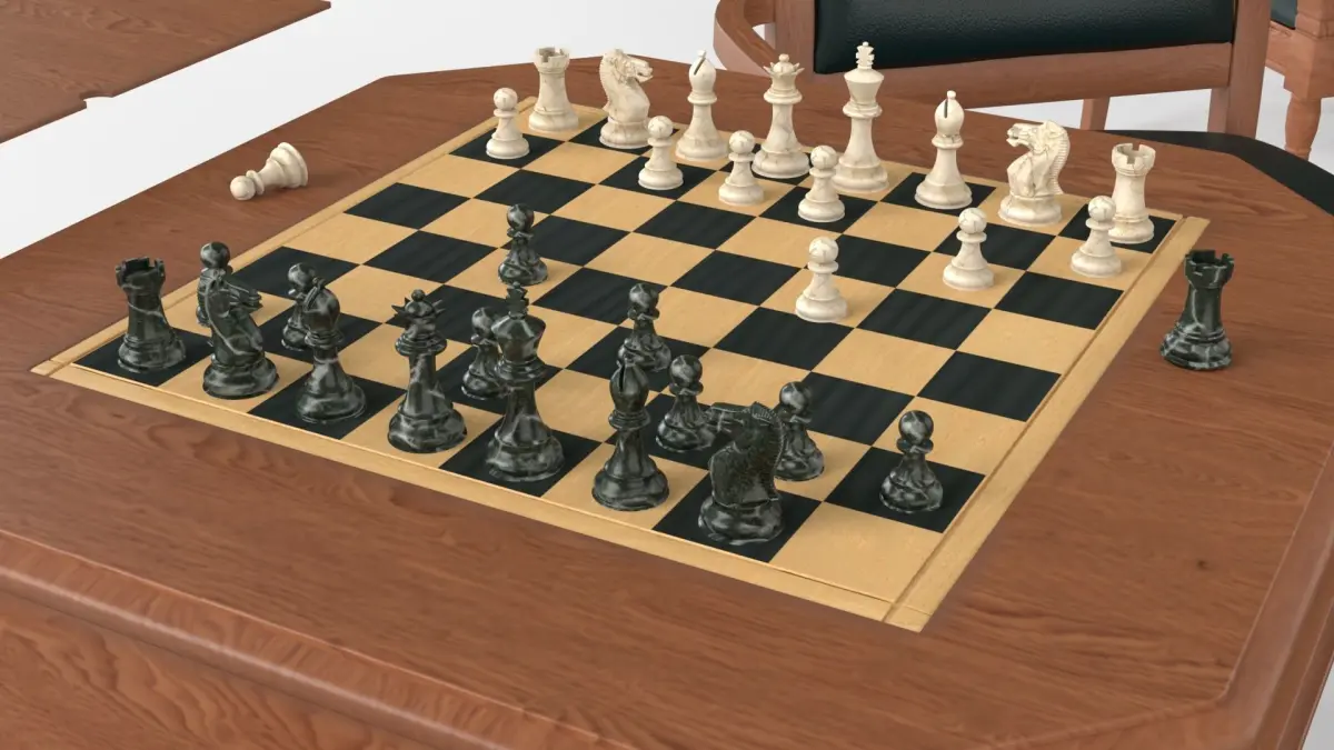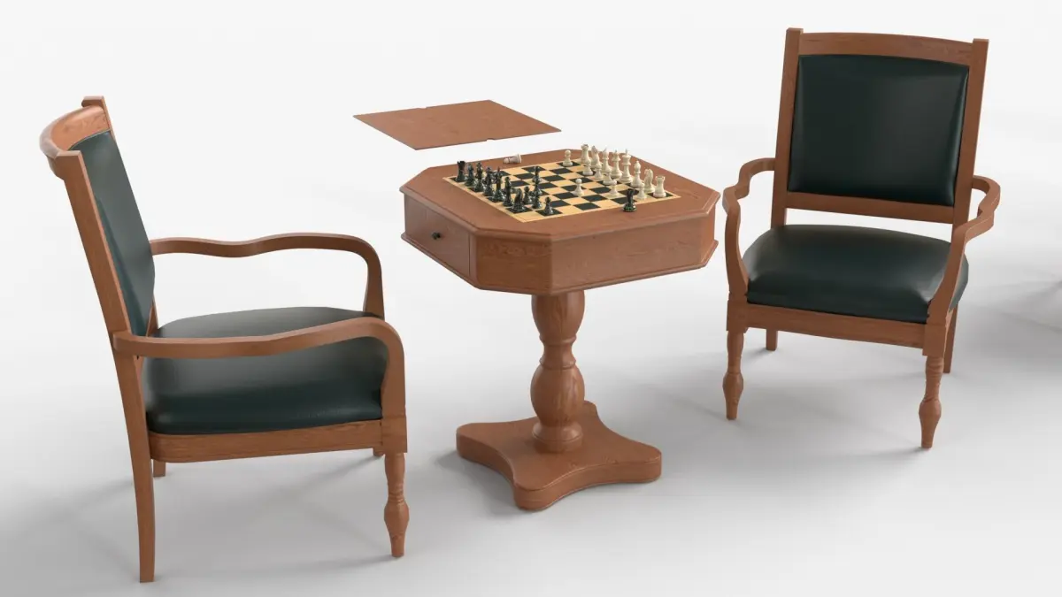Light Wooden Chess (Pieces and Board), Checkers & Backgammon Pedestal Game Table & Chairs Set - Mahogany
