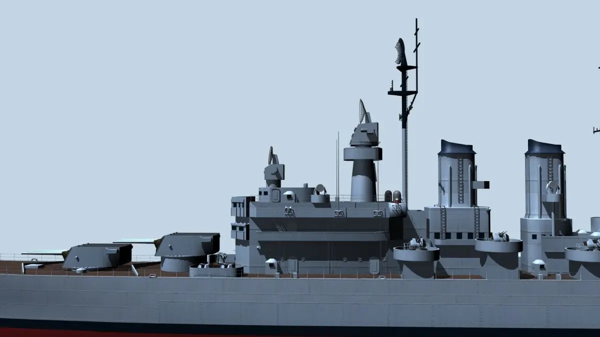 This model is based on the late 1940's US Navy Light Cruisers design, however does not represent any real ship in particular, some details are a mix from various ships of the same type. Includes Sky and Ocean, Takes me 2 sec. to render, medium/low poly model. V3 model dimentions: Legth: 194 meters long (636.5 feet) With: 17 meters wide ( 55.7 feet)