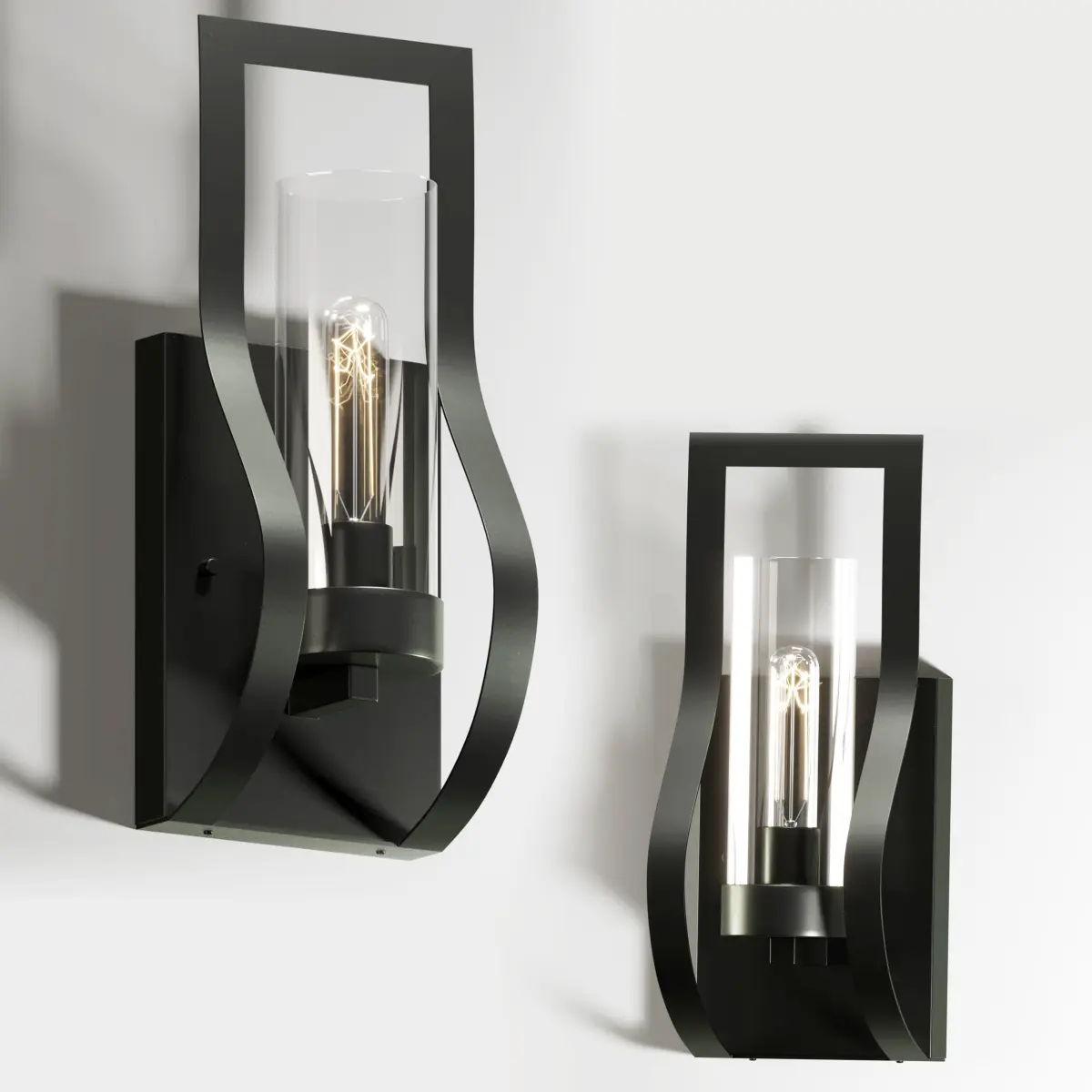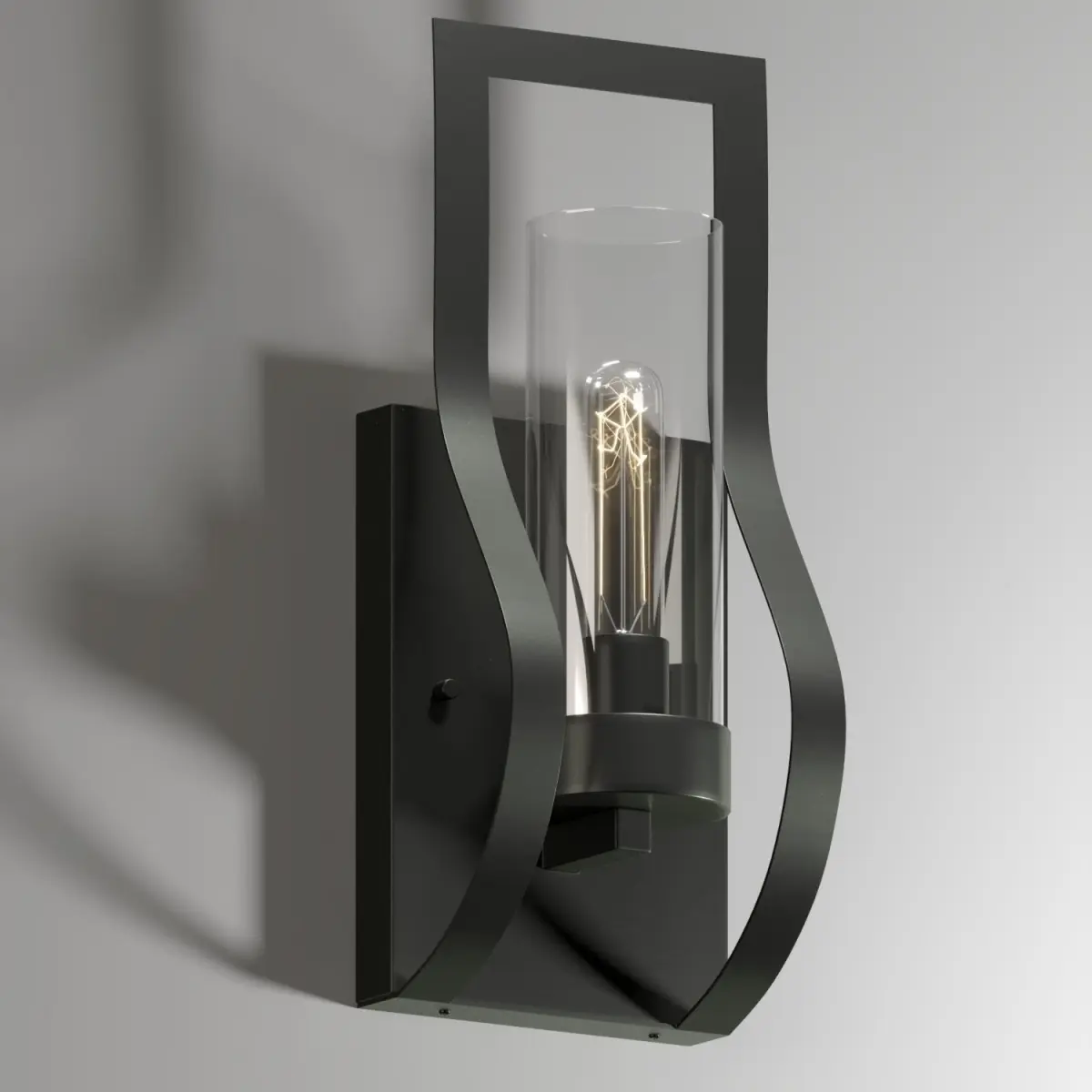 - About product:Elevate your home lighting with this stunning, indoor wall sconce. Featuring a delightfully curvaceous frame and an antiqued black finish with a light brush of brown, this contemporary lighting fixture makes your room come alive while softly illuminating it. The clear, cylindrical crystal glass shade snugly cradles its solitary light, making this wall sconce a striking piece even when not switched on. Crafted of sturdy iron, this light is built for durability, while its hardwired switch offers convenient lighting control.
