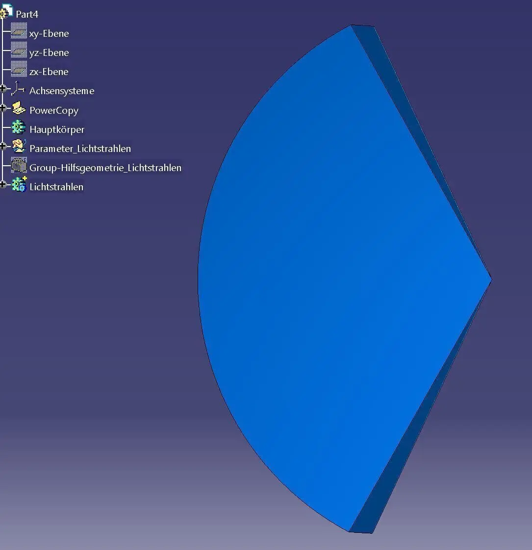 BeschreibungParabel, Punkt und p-Hälfte für die AutomobilbeleuchtungDieses Konzept basiert auf der parabolischen Geometrie und verwendet einen bestimmten Punkt und den Parameter p/2 (p-Hälfte), um die Lichtrichtung in Scheinwerfern und Rückleuchten zu optimieren. Die Paraboloidverteilung entlang einer Kurve ermöglicht eine präzise Lichtstrahlsteuerung und eine verbesserte Ausleuchtung.Technische Merkmale:Parabolreflektor mit Fokuspunkt: Effiziente Lichtbündelung durch Reflexion im Brennpunkt.p-Hälfte (p/2) Parameter: Optimiert die Lichtstreuung und verbessert die Steuerung der Lichtverteilung. Kurvenbasierte Anordnung: Sorgt für eine gleichmäßige und gezielte Lichtlenkung von Scheinwerfern (Abblend-/Fernlicht) und Rückleuchten. Dieses 3D-Modell eignet sich perfekt für Ingenieure und Designer, die fortschrittliche Beleuchtungssysteme für die Automobilindustrie mit präziser Lichtsteuerung entwickeln.Kompatibel mit CATIA V5-6R2014 und höher.