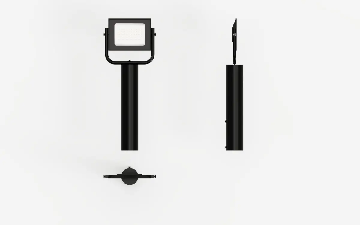 The device has a minimalist design. It has a black metal frame, consisting of a sturdy stand and a rectangular lamp head. The lamp head is equipped with many LED bulbs, providing strong and effective light to the surrounding space. With a simple but sophisticated design, this device is suitable for outdoor lighting or in public areas such as parks, parking lots or sports fields.
