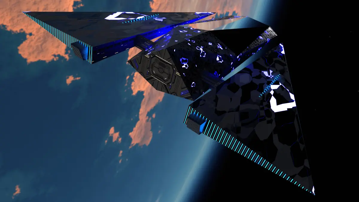 Diamond Blade is a spectacular small lightweight luxury reconnaissance & exploration spacecraft. It got its name from the shape of a blade cutting through space-time and the spectacular texture of iridescent diamond facets that glow with a sci-fi blue light. The blade-shaped hull of the ship, in addition to the diamond iridescent texture, has a huge glass cockpit, which is an ideal mirror. It adds beauty to the ship, distinguishing it from other similar ships and showing everyone how luxurious it is. In front of the ship there are small, compact, bright headlights that shine with white light. At the rear of the ship there is a small, compact, square gateway. On top of the ship's wings are small laser guns that glow beautifully with a turquoise light. Also, behind these wings, you can see small exhausts of hyper-fast engines that have a beautiful hexagonal texture made of super-modern materials. In addition, the ship comes with a landing device, it is a kind of metal legs; it is not very beautiful, although if you want, you can use it when you put the ship to stand.