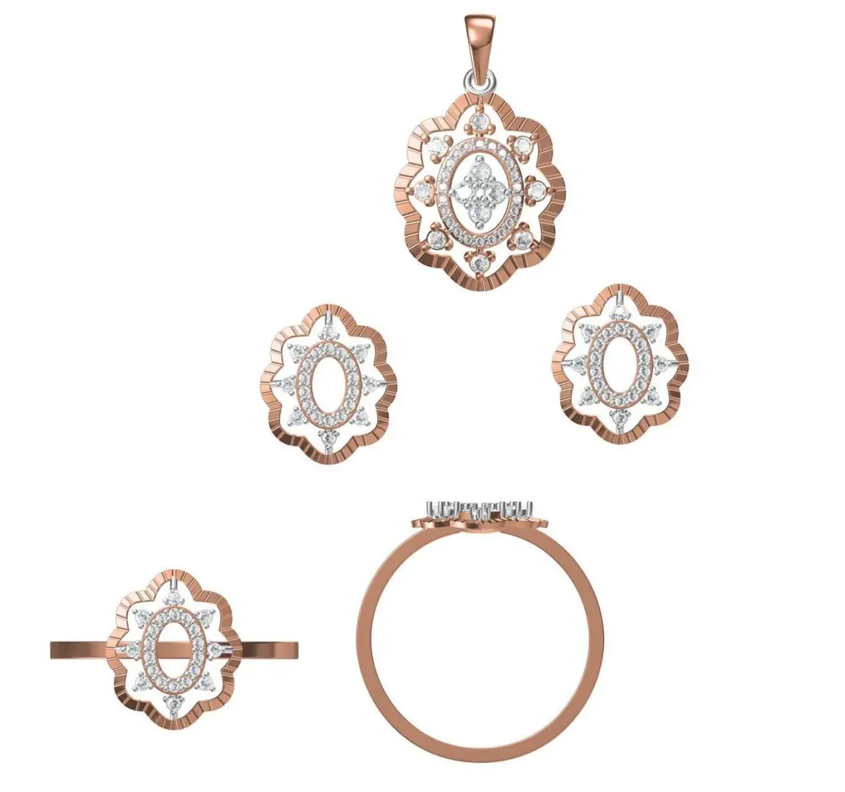 Home Catalog Light Minimalist Diamond Ring Earrings Pendant Set 3D print model