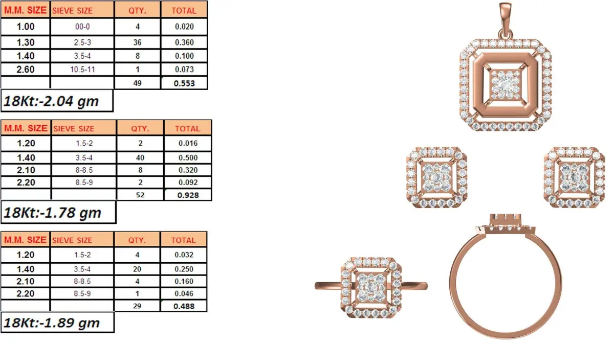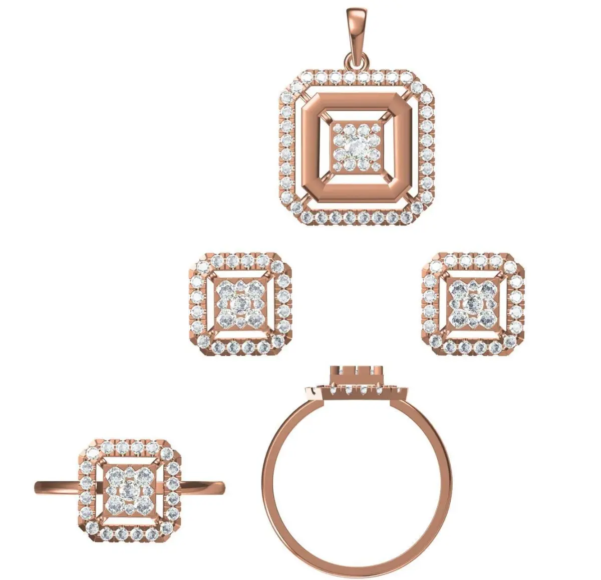 Home Catalog Light Minimalist Diamond Ring Earrings Pendant Set 3D print model