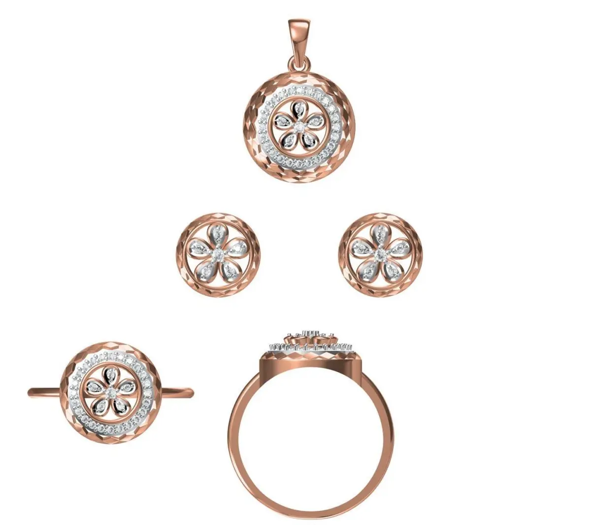 Home Catalog Light Minimalist Diamond Ring Earrings Pendant Set 3D print model