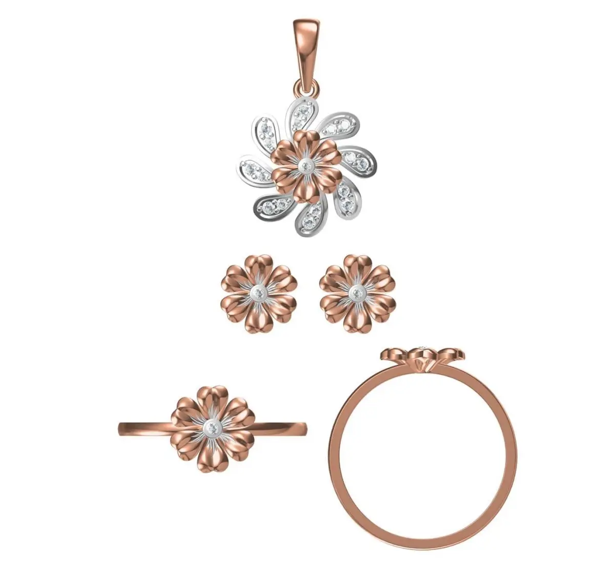 Home Catalog Light Minimalist Diamond Ring Earrings Pendant Set 3D print model