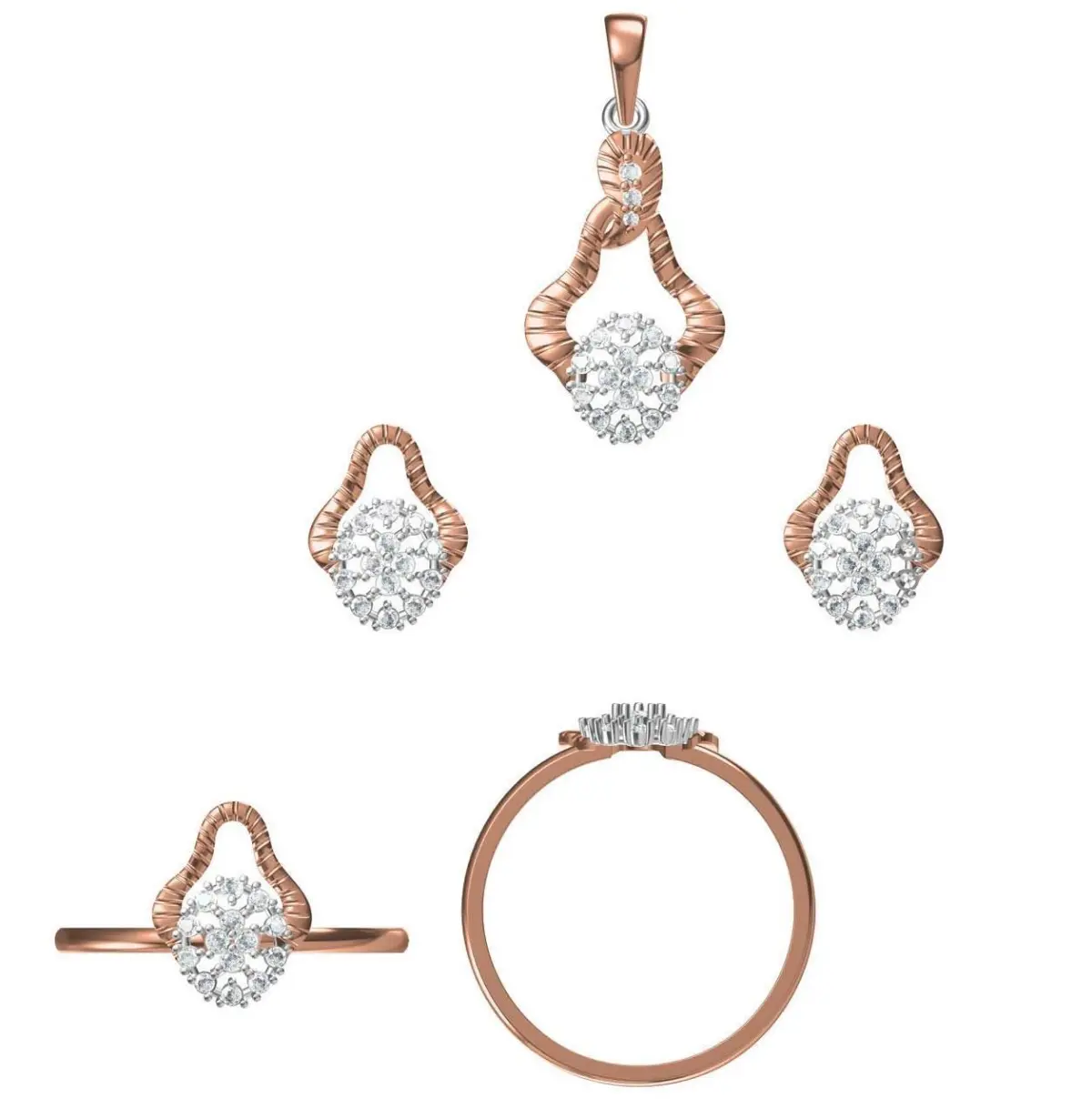 Home Catalog Light Minimalist Diamond Ring Earrings Pendant Set 3D print model