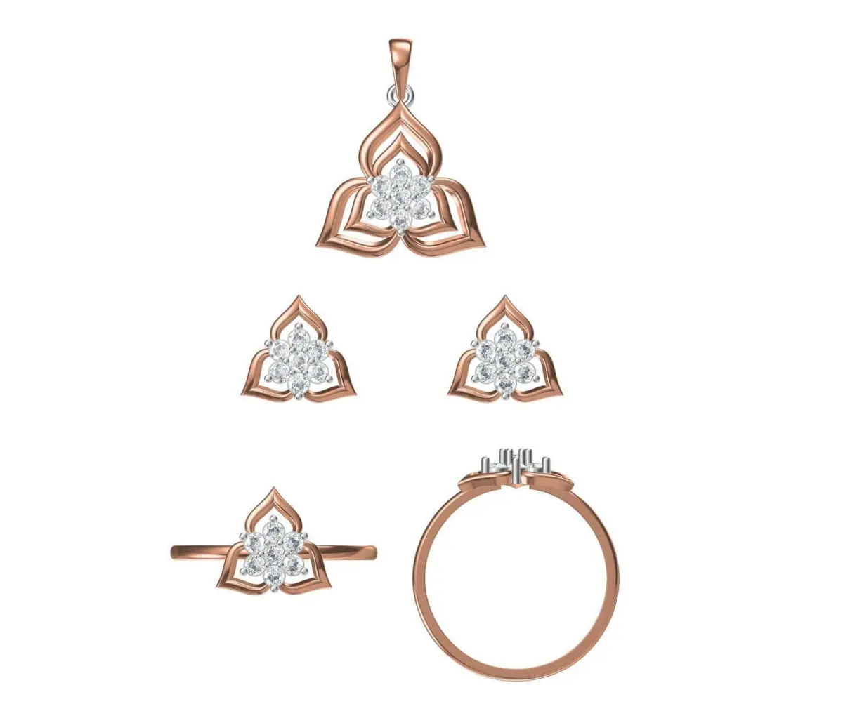 Home Catalog Light Minimalist Diamond Ring Earrings Pendant Set 3D print model