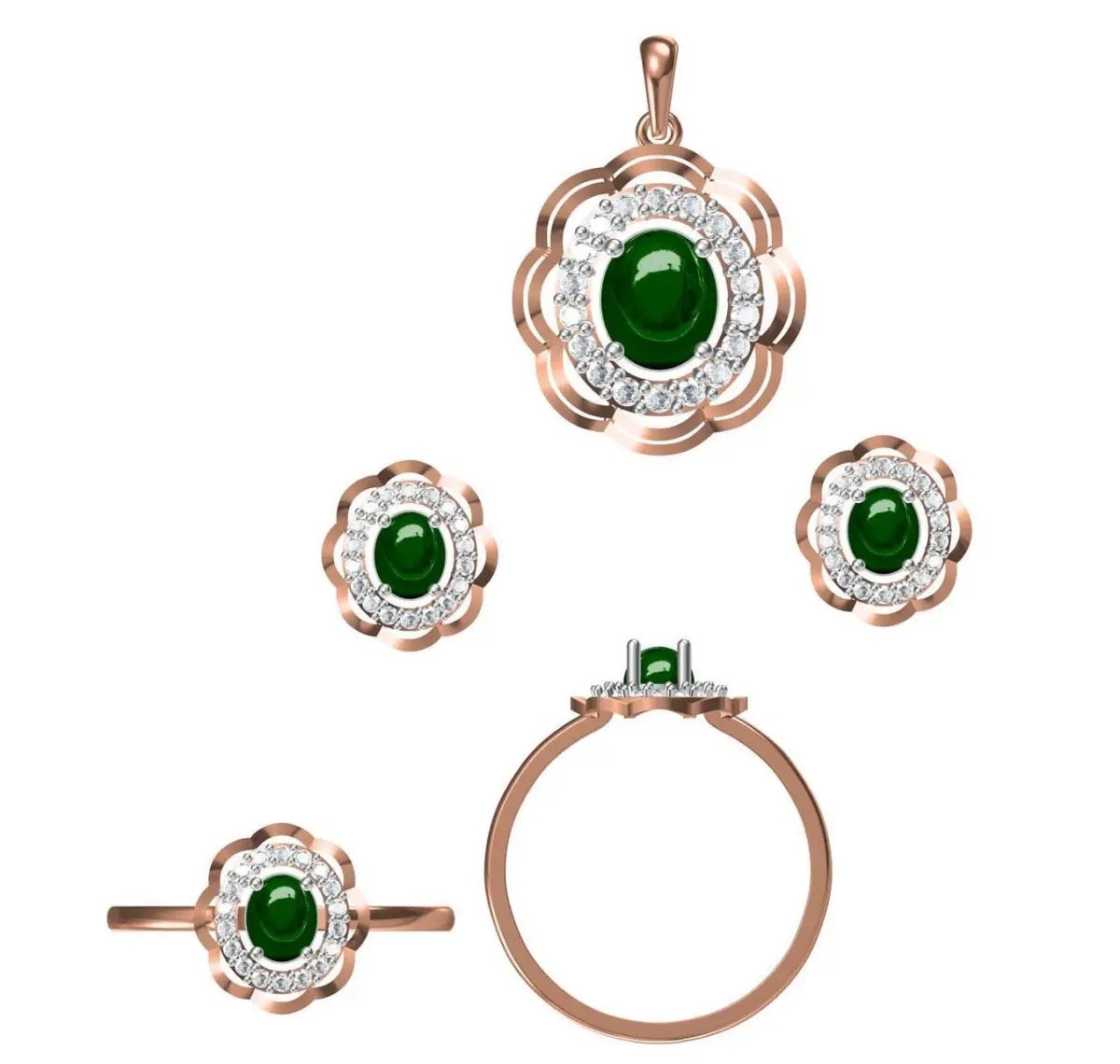Home Catalog Light Minimalist Diamond Ring Earrings Pendant Set 3D print model